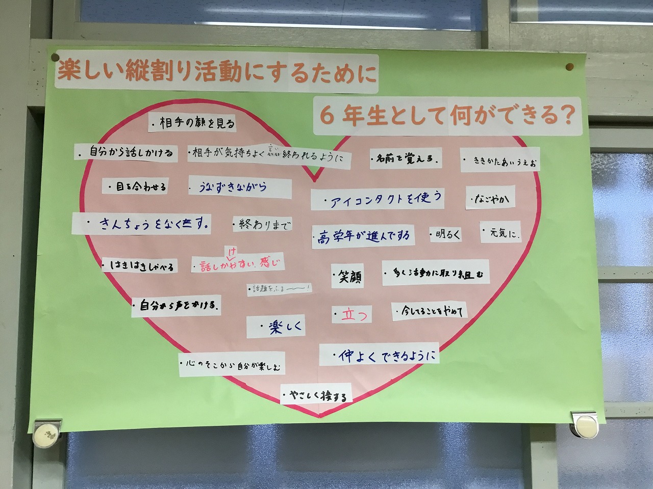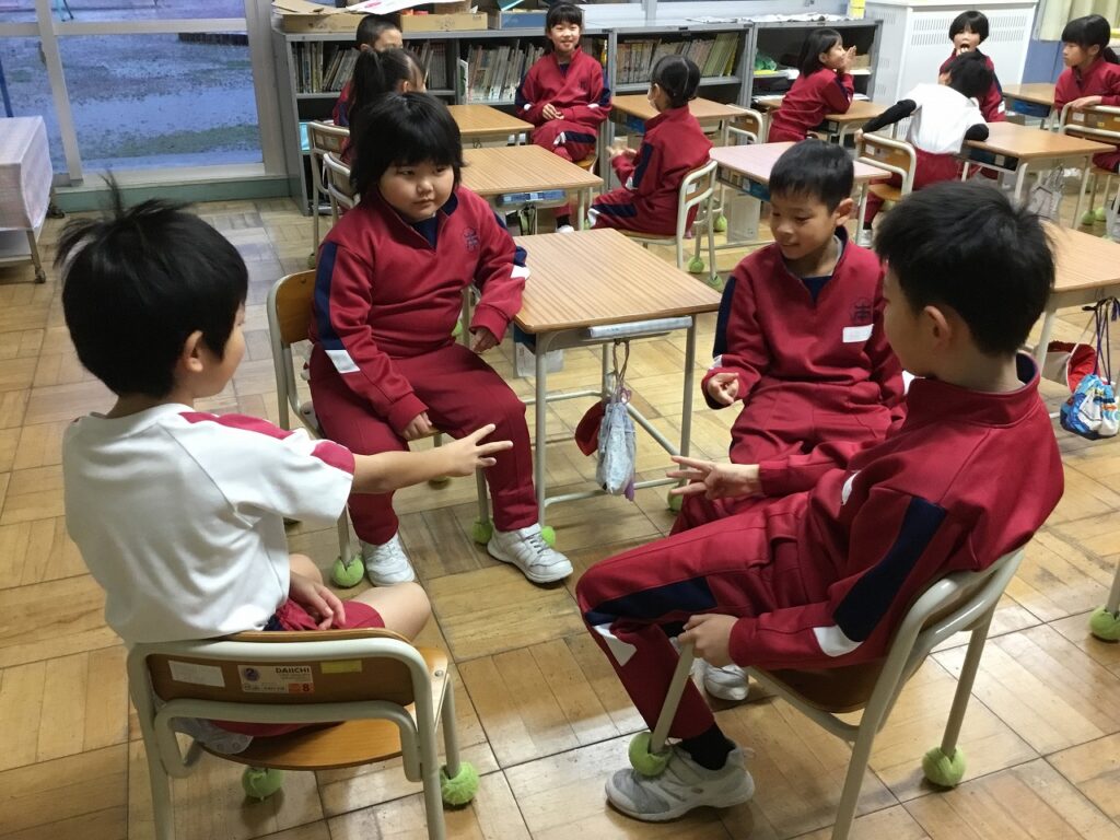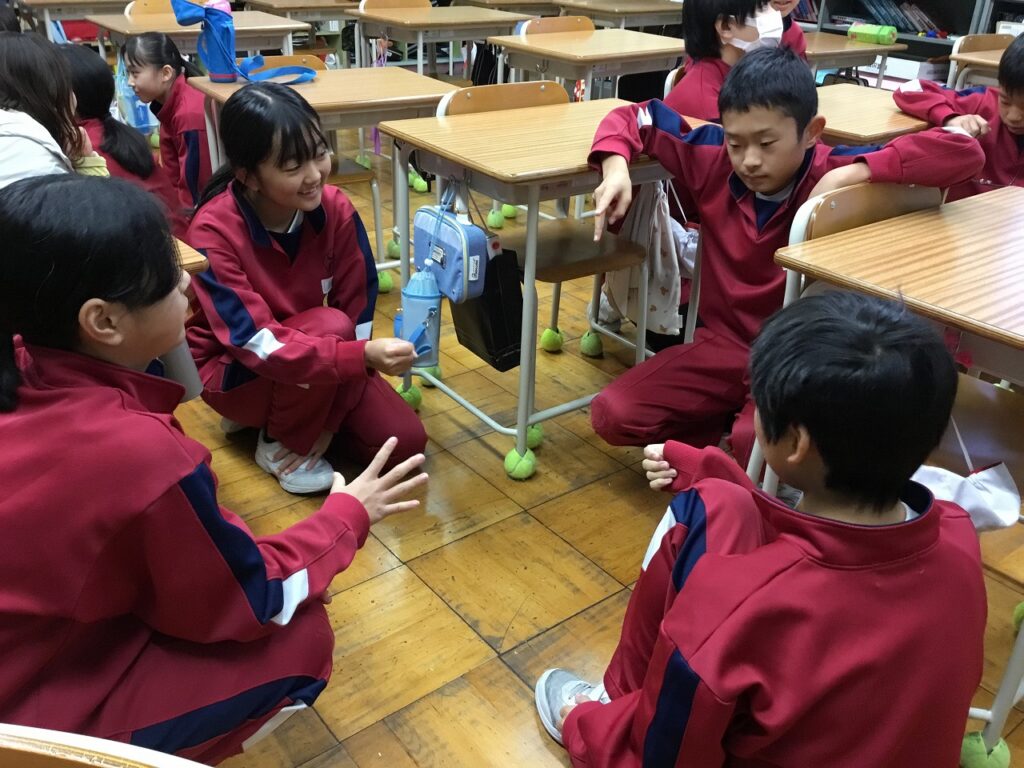 今朝の「にこにこタイム」の活動は、『アドじゃん』。前期にも行いましたが、お題を変えての2回目です。今日は学級ごとに行いました。笑顔で、うなずきながら友達の話を聴く姿がたくさん見られました。