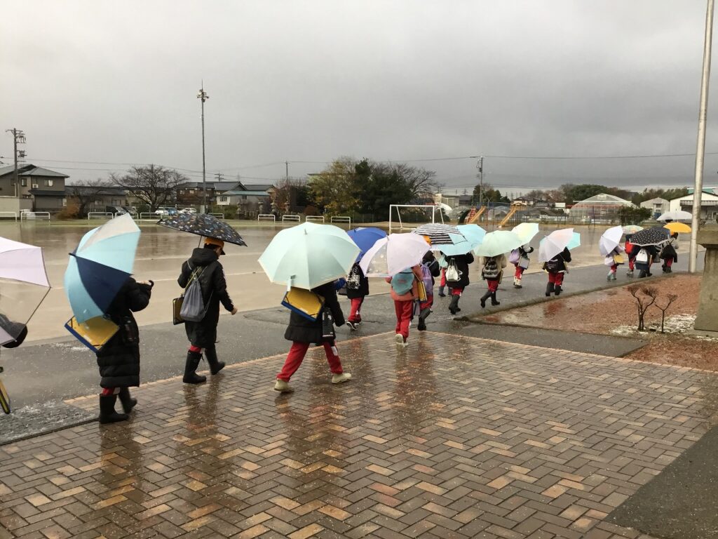 12月5日(金)、うっすらと雪が積もる朝となりました。今週も今日で終わりです。雨の中、3年生は校外学習に出かけました。