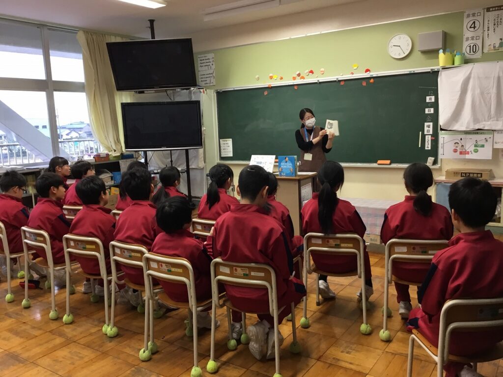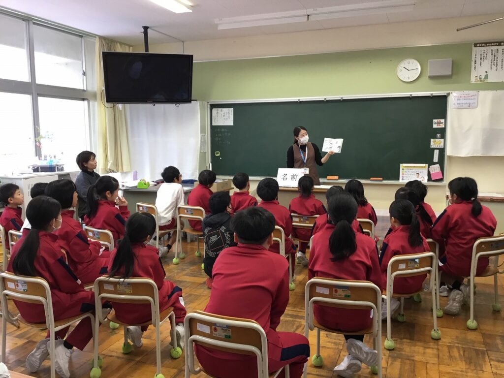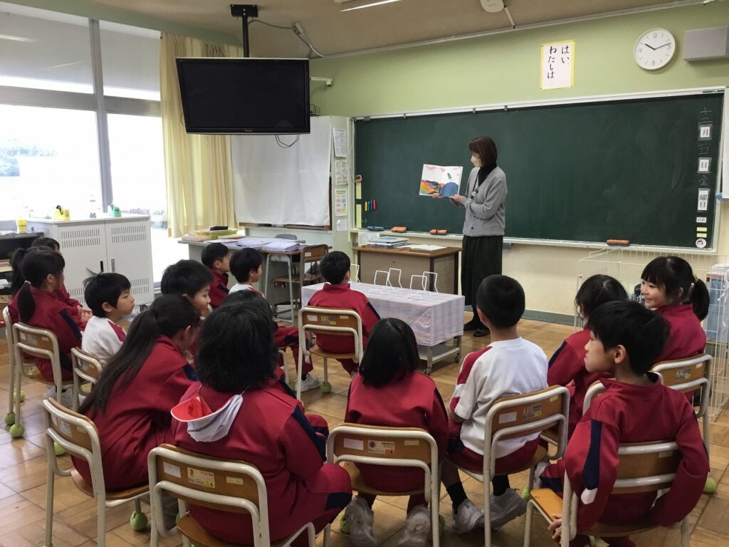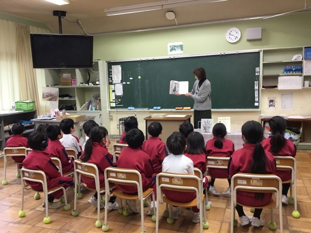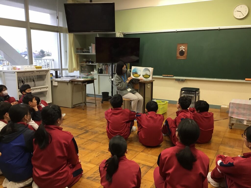 昨日の読書集会に引き続き、今日は芦原図書館の方によるブックトークを行いました。どの学年にもテーマがあり、1年生は『手』、2年生は『とぶ』、4年生は『名前』、5年生は『時間』、そして6年生は『穴』でした。子どもたちは、興味深く聴き入っていました。