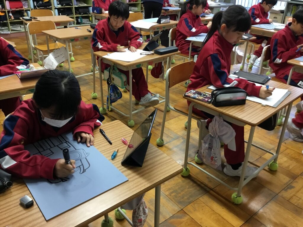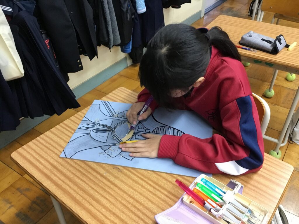 この時期になると、どの小学校でも取り組む「版画」。今日は5年生が熱心に作品作りに取り組んでいました。
