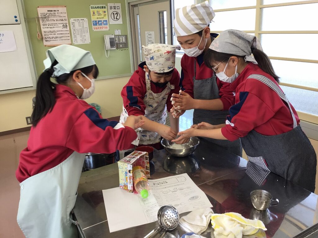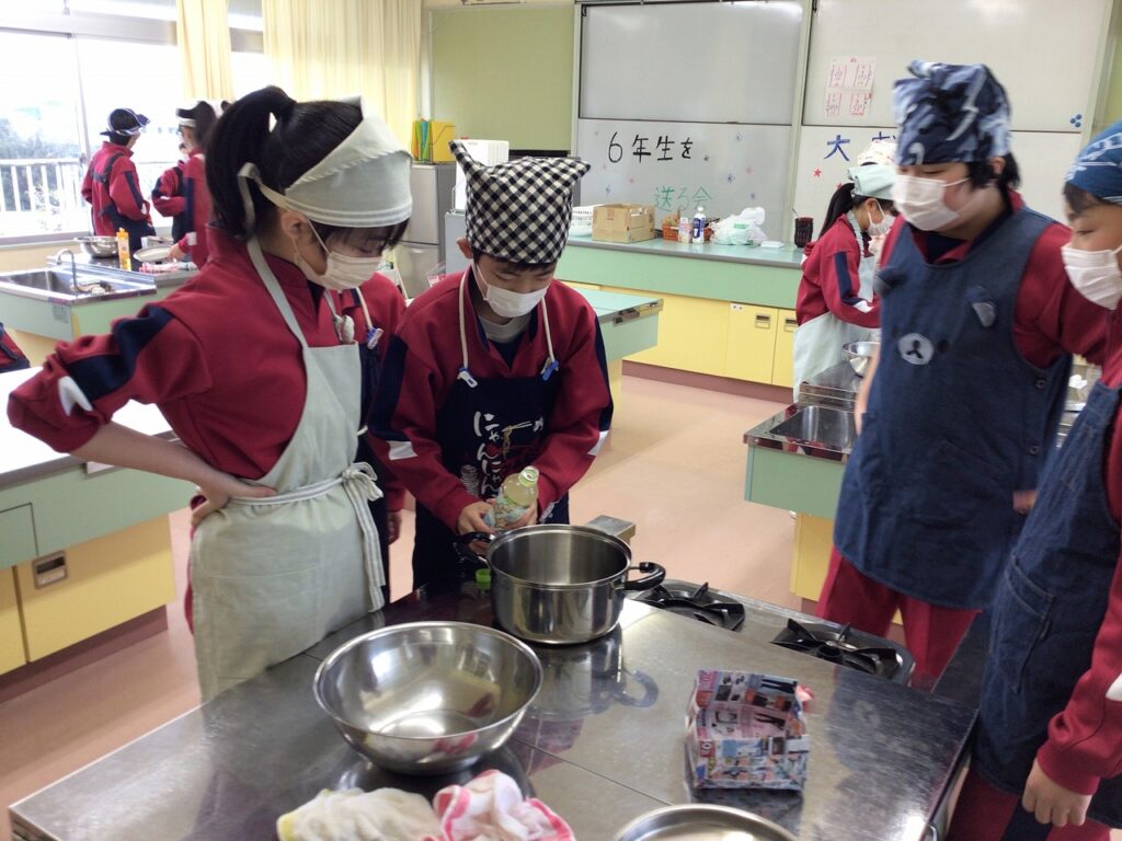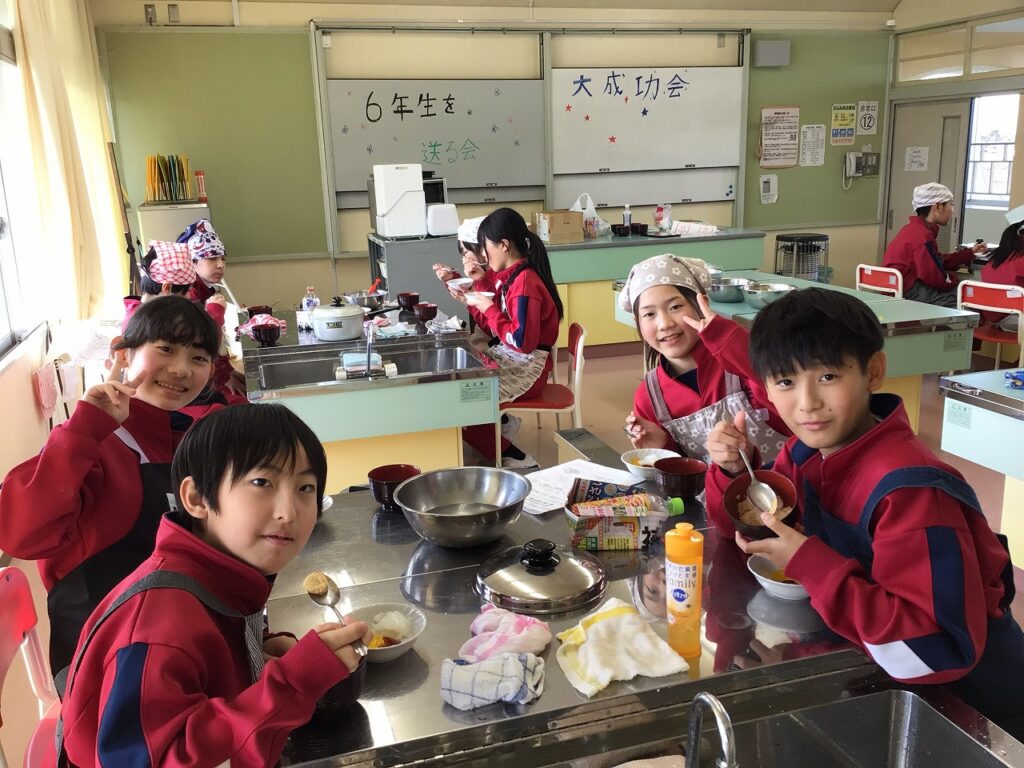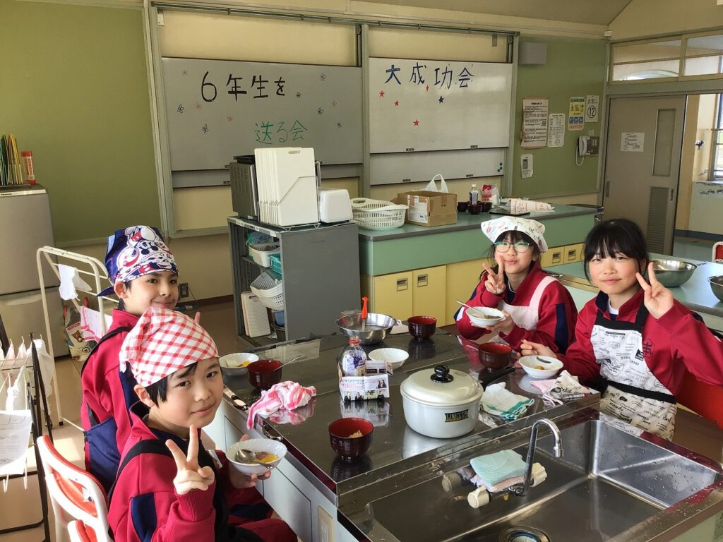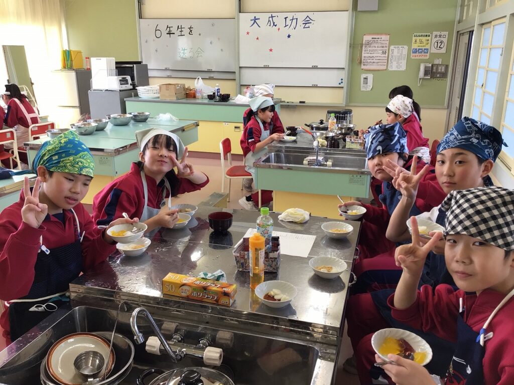 「6年生を送る会」を大成功に導いた5年生。昨日、クラスで調理活動を行い、みんなで楽しい時間を過ごしました。