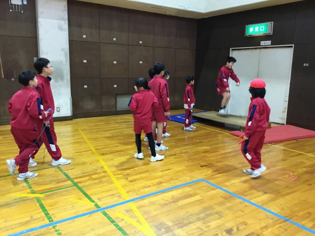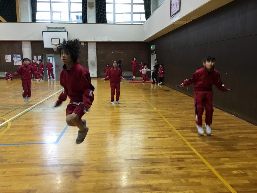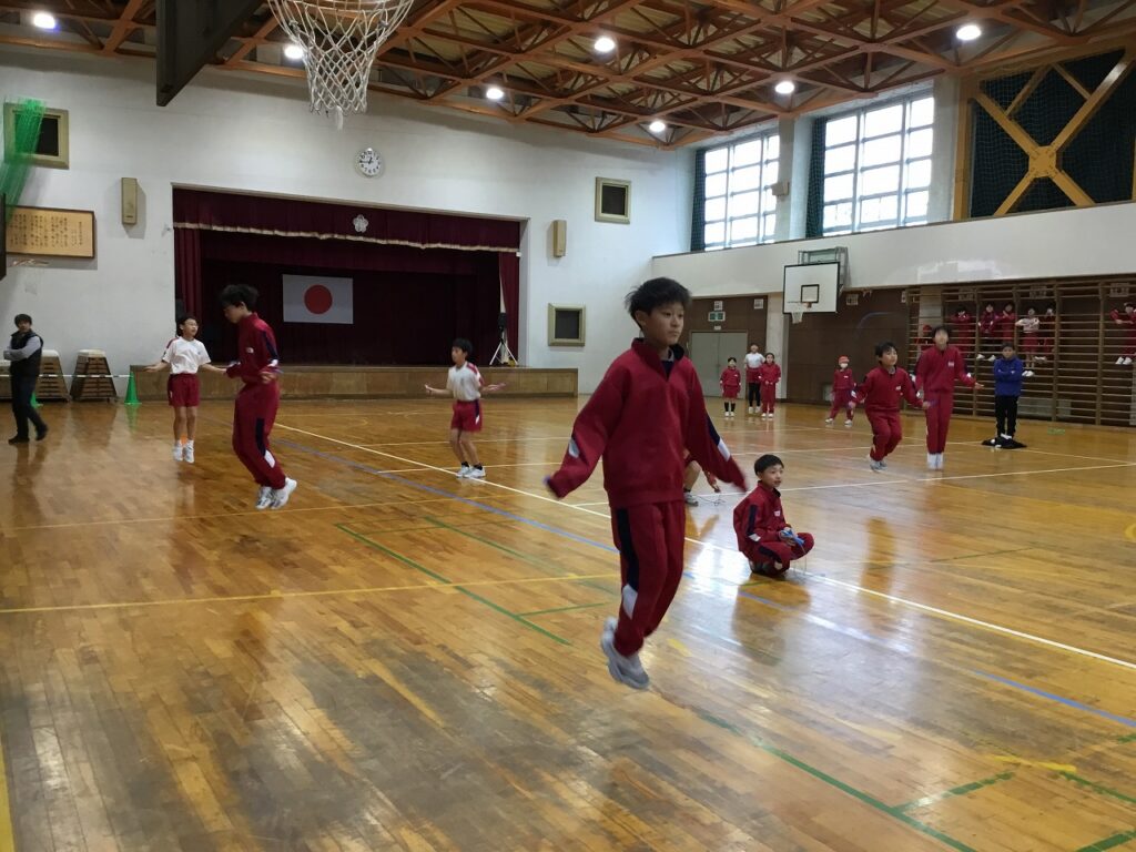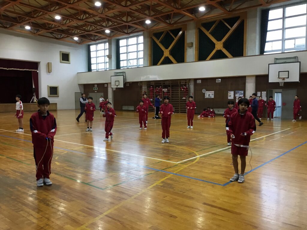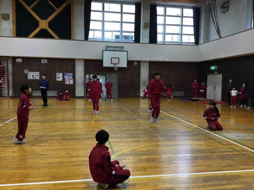 友達を応援しようと体育館に集まってきた児童もたくさんいました。また、跳ぶ練習に集まってきた児童もいました。子どもたちの間に、なわとびのブームが広がりつつあります。