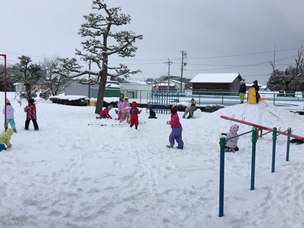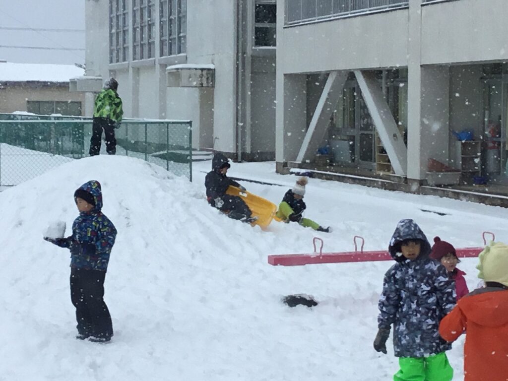 子どもたちは今日も、グラウンドや中庭で雪遊びを楽しみました。昼休みになると、1年生から6年生までのたくさんの子どもたちが外に出て、雪玉を投げたり雪だるまを作ったりして元気に遊んでいました。