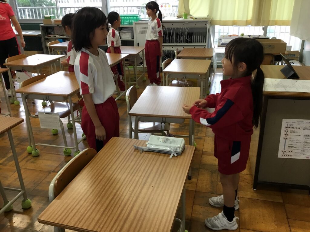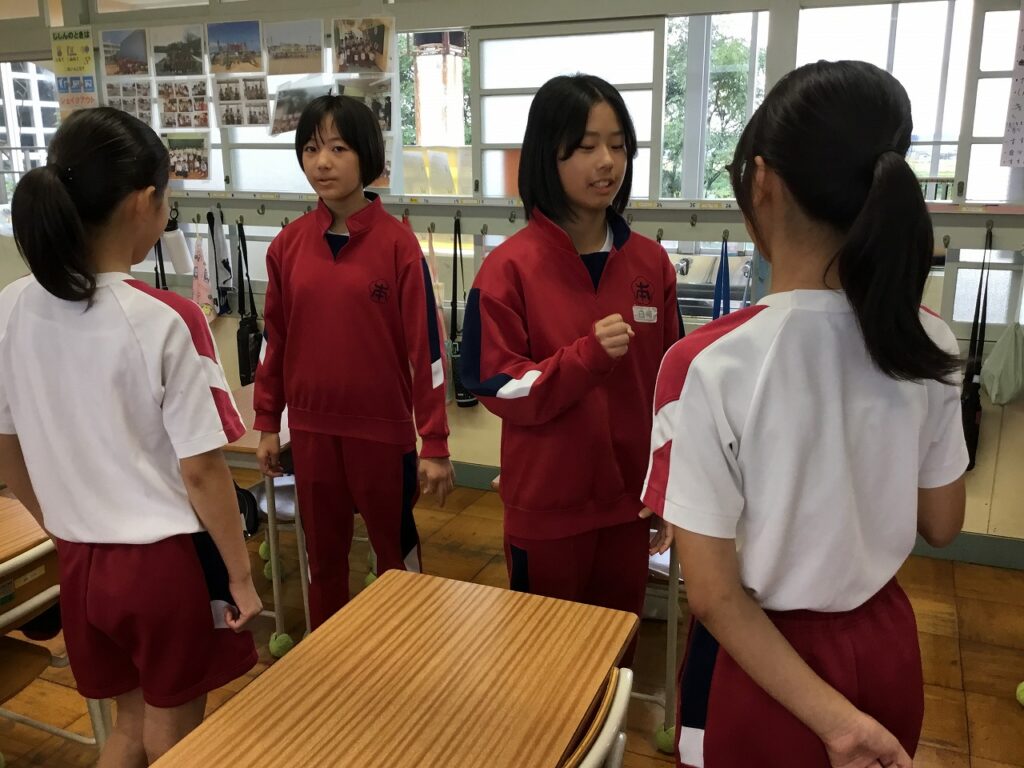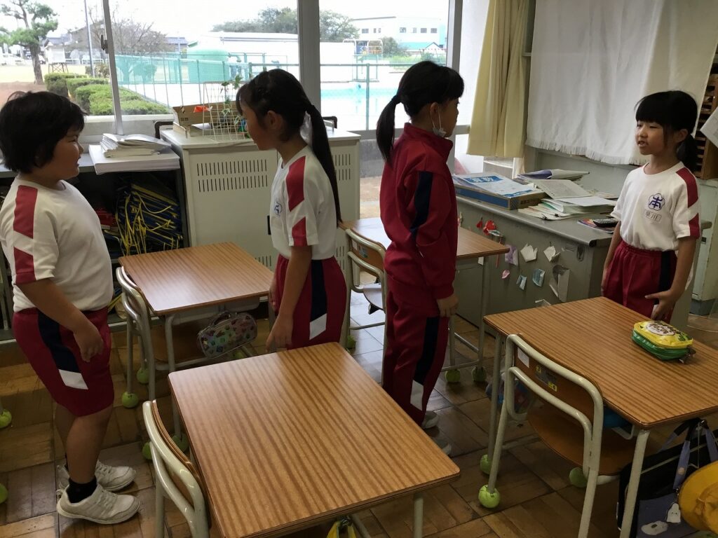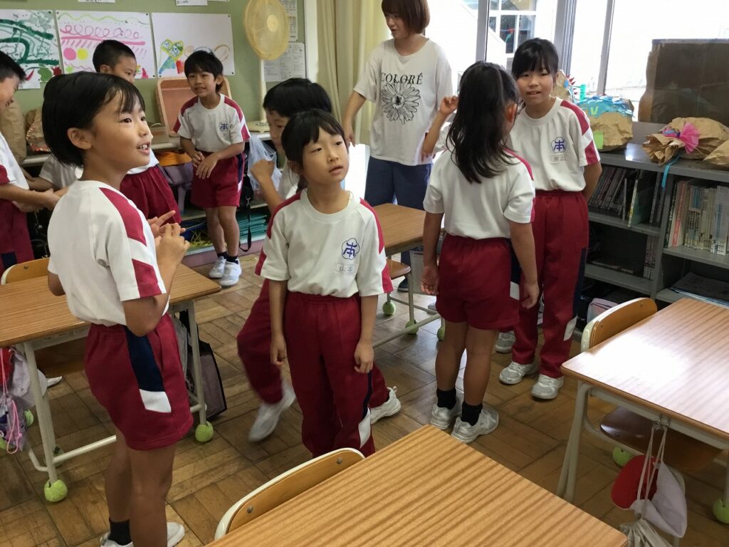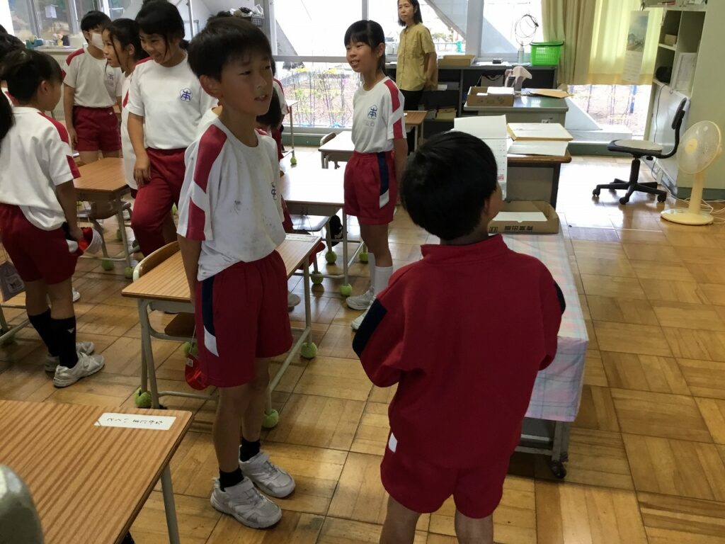 今朝のにこにこタイムは、先週各学級で行った『質問じゃんけん』を、ペア学年で行いました。1年生と4年生、2年生と3年生、5年生と6年生です。上の学年の児童がリードして、上手に取り組んでいました。うなずき、アイコンタクト、笑顔の3つの視点で振り返っている学年もありました。