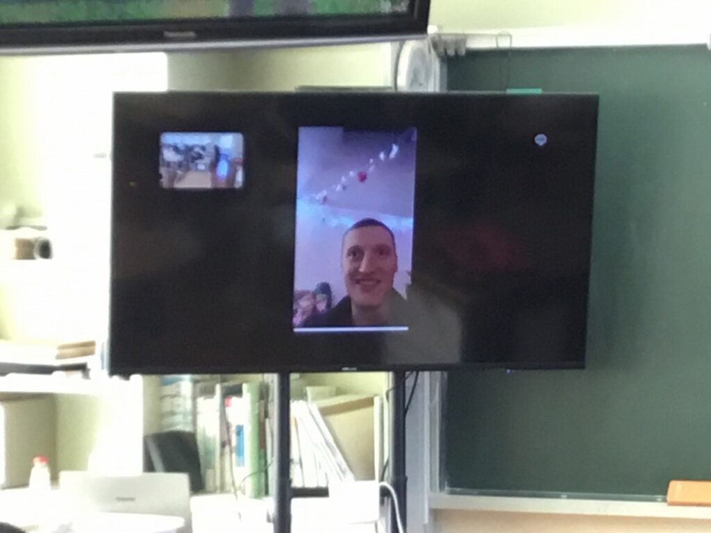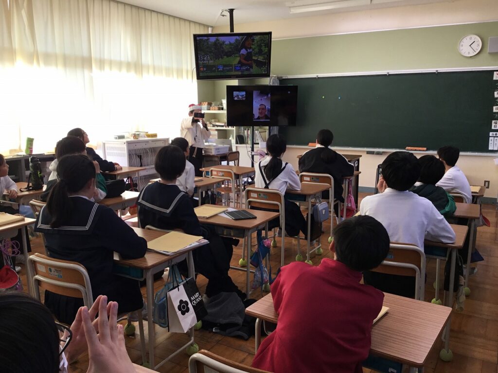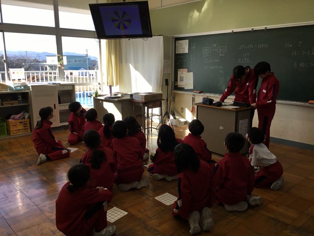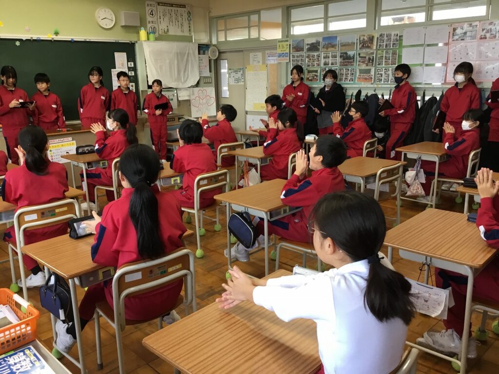 午後の6年生の英語の授業では、アメリカに帰省しているALTの先生とビデオ電話で会話しました。クリスマスを祝う雰囲気が伝わってきて、6年生は興味津々の様子でした。