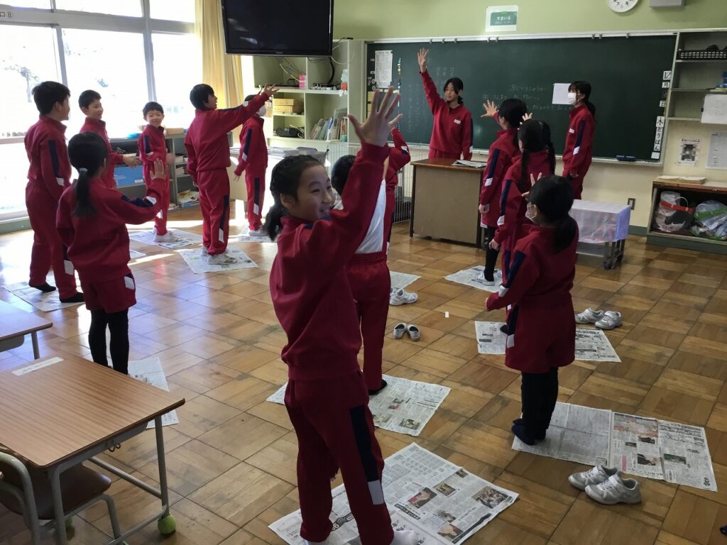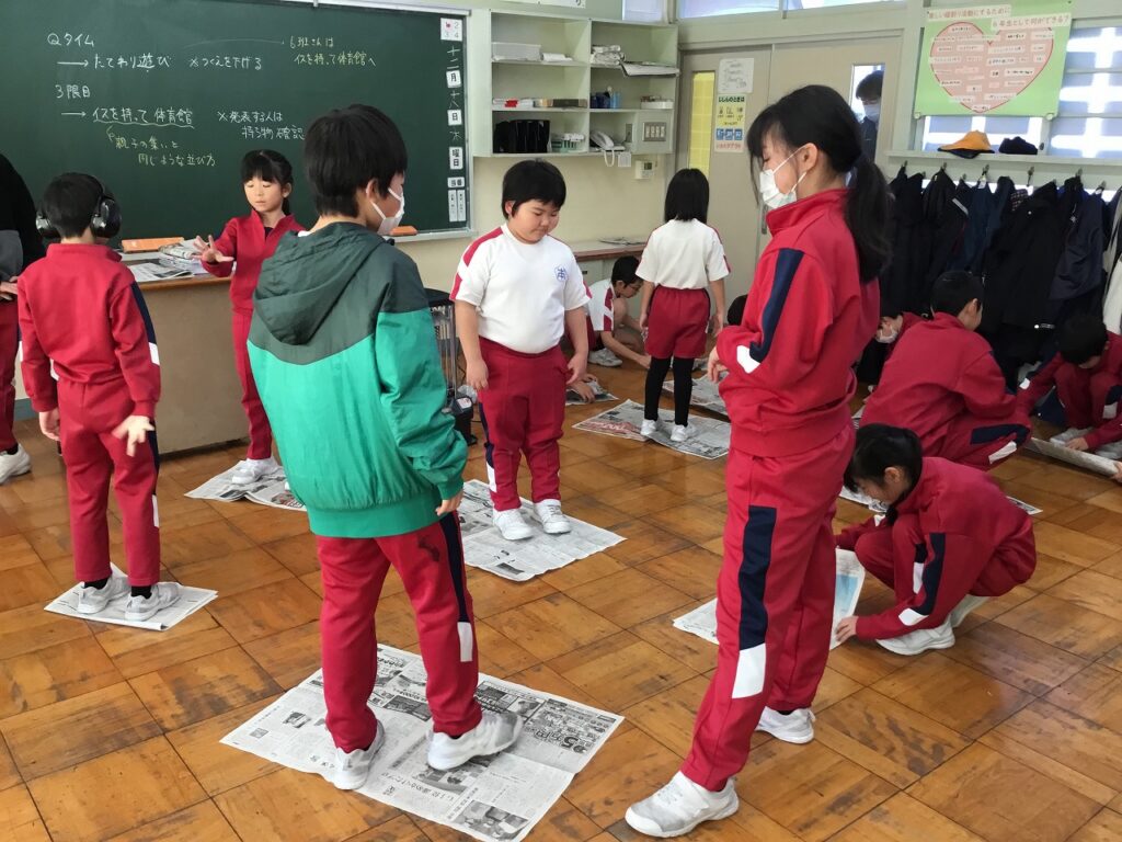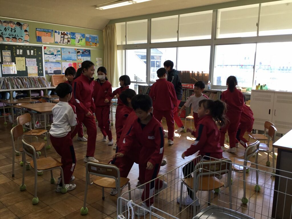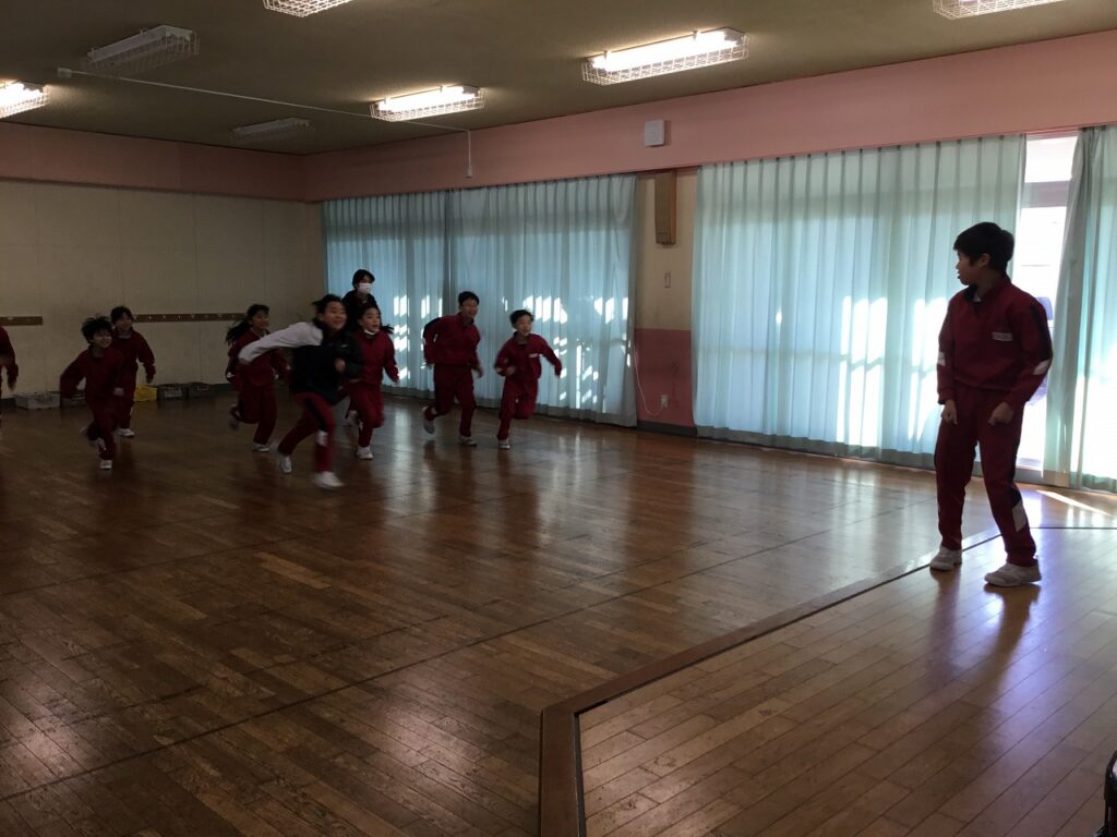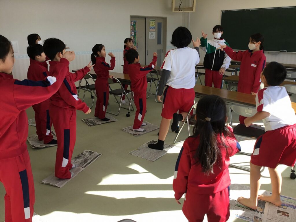 Qタイムは今年最後の縦割り遊びを行いました。8つの縦割り班ごとに、6年生が考えた遊びを楽しみました。
