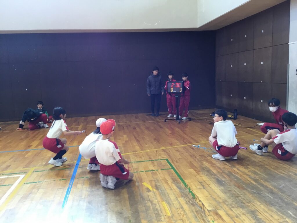 昼休みは一昨日から始まった『団体戦二重とびサバイバル』の決勝戦がありました。決勝に進んだ3チームとも大健闘でした。見事、優勝に輝いたのは6年生チームでした。たくさんの子どもたちが応援に集まりました。