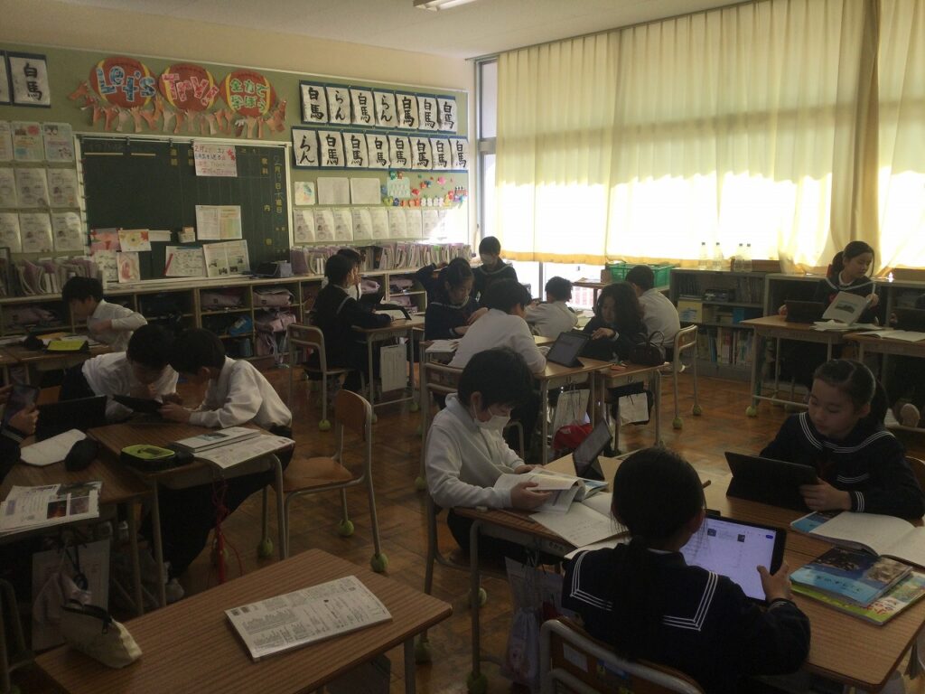 3学年の授業の様子をお知らせします。4年生は社会科の学習でした。グループでタブレットを用いて調べ学習に取り組んでいました。5年生が総合の時間。きっと6年生を送る会の準備に取り組んでいたのでしょう。とても楽しそうでした。そして6年生は英語の授業。将来なりたい職業について表現を広げていました。