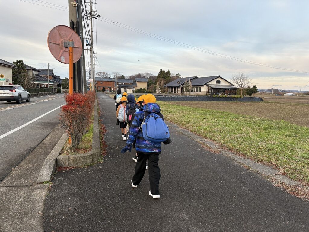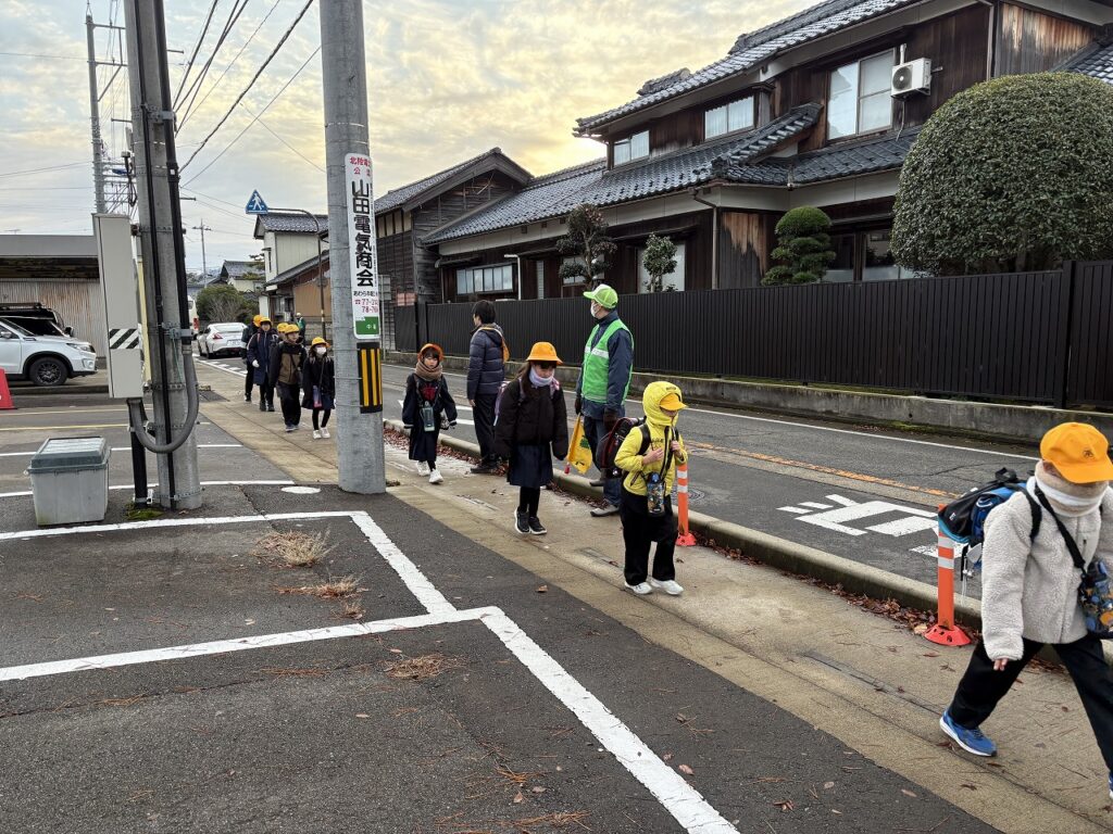 12月11日(木)、冷たい風が吹く朝でした。今日から20日(土)までの10日間、年末の交通安全県民運動が行われます。今朝、警察、交通安全協会、あわら市役所の方々、そして地域や保護者の方々が児童の登校を見守ってくださいました。寒い中、早朝よりありがとうございました。