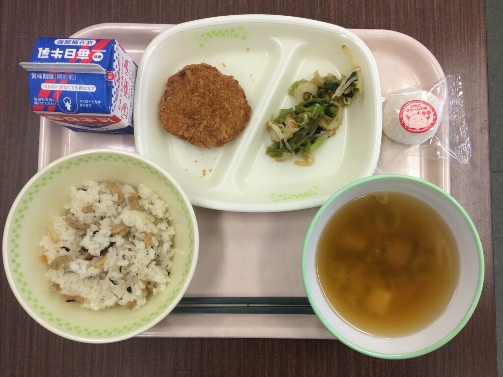 今日はひな祭り。給食もひな祭りにちなんだメニューでした。