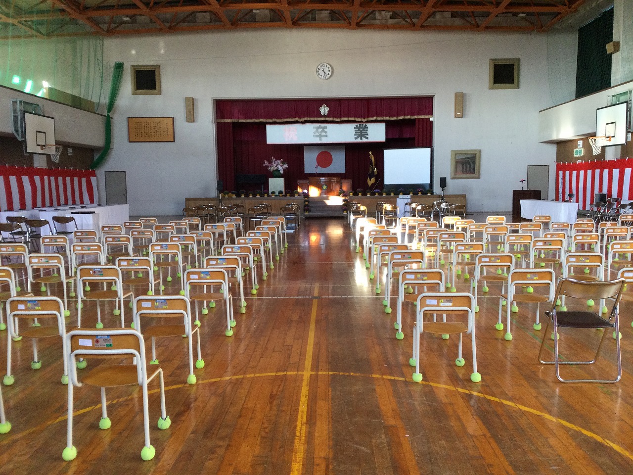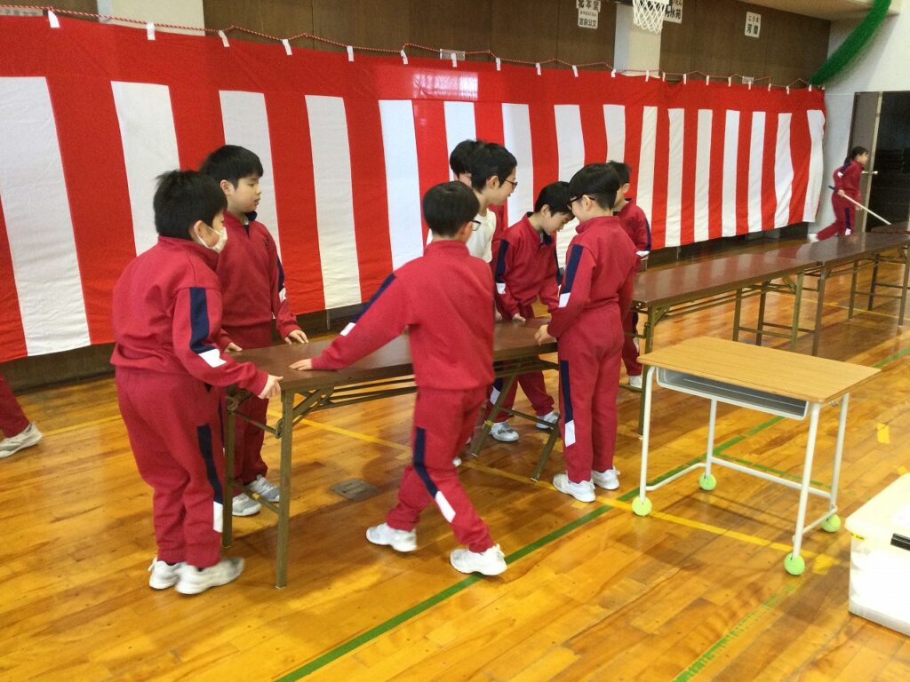 午後からは、4年生と5年生が明日の卒業式の準備を行いました。6年生への感謝の気持ちをこめ、全員が一生懸命取り組んでくれたおかげで、卒業式の準備が整いました。明日は、本荘っ子みんなで6年生を温かく送り出したいと思います。