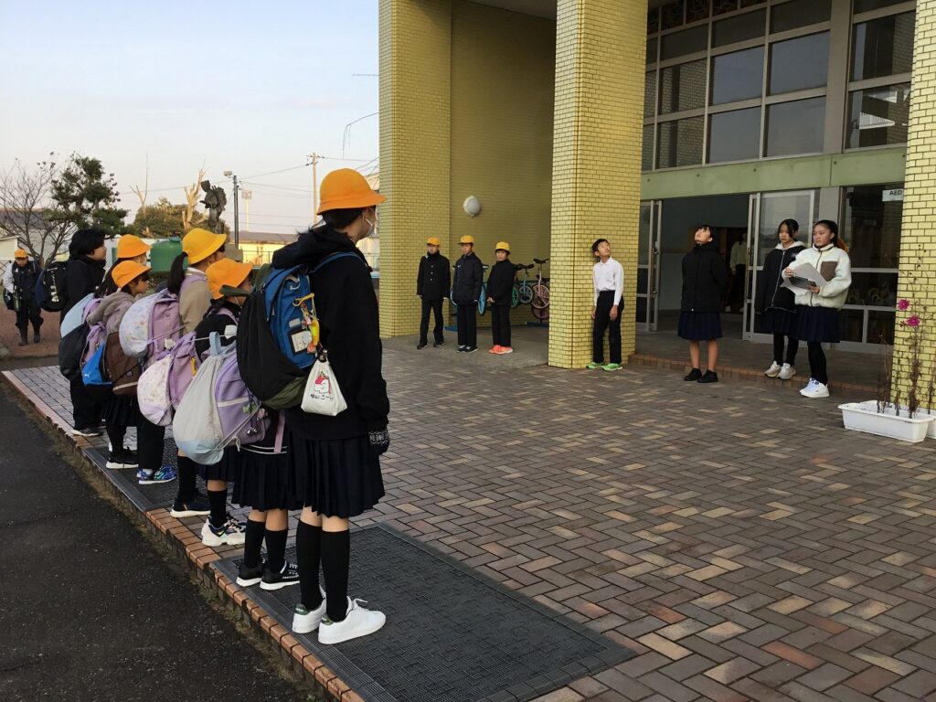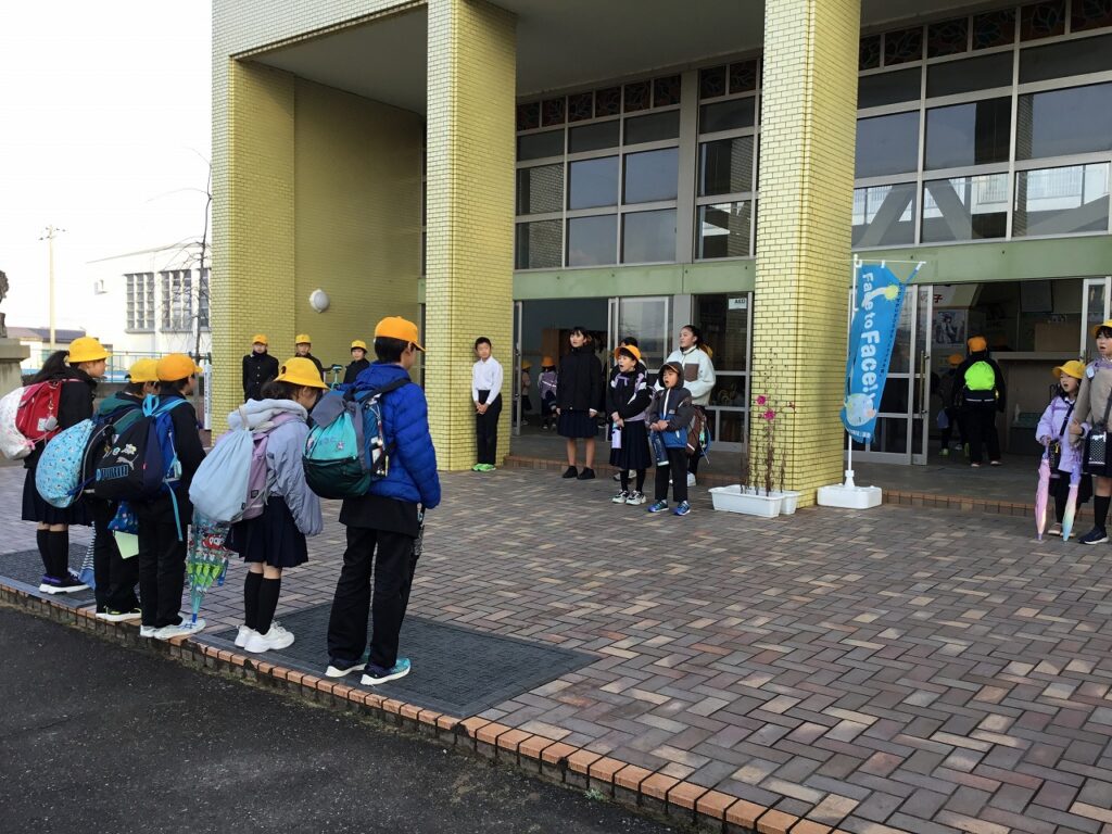 12月3日(水)、朝から雨が降り、子どもたちは傘をさしての登校となりました。昨日から計画体育委員会のあいさつ運動が始まりました。高学年の児童が朝のあいさつを盛り上げてくれています。