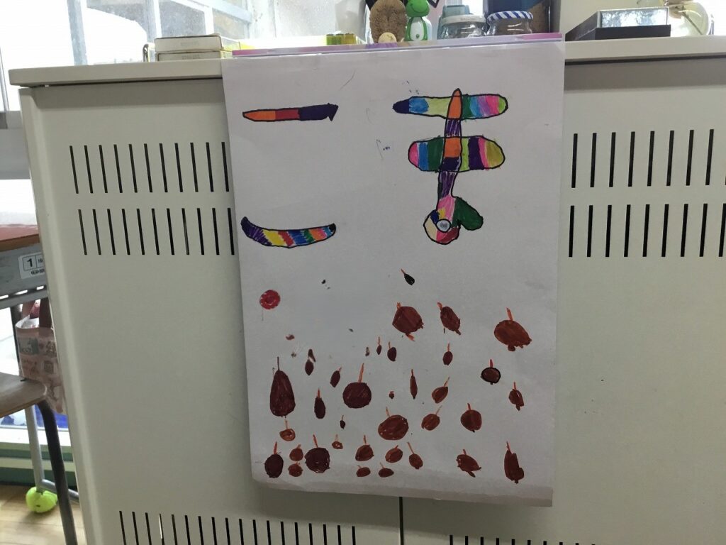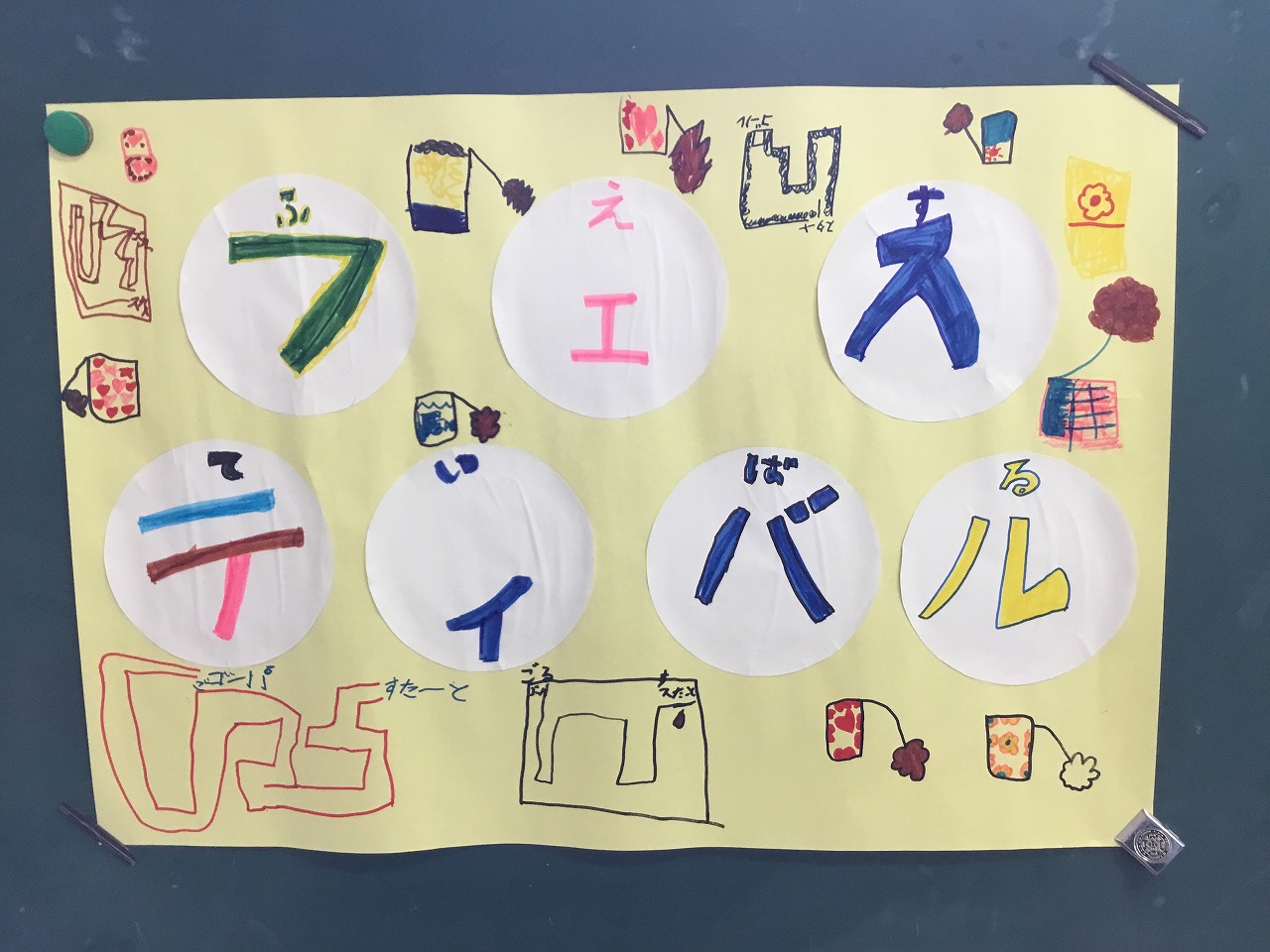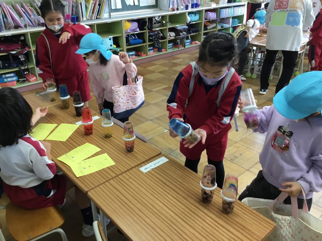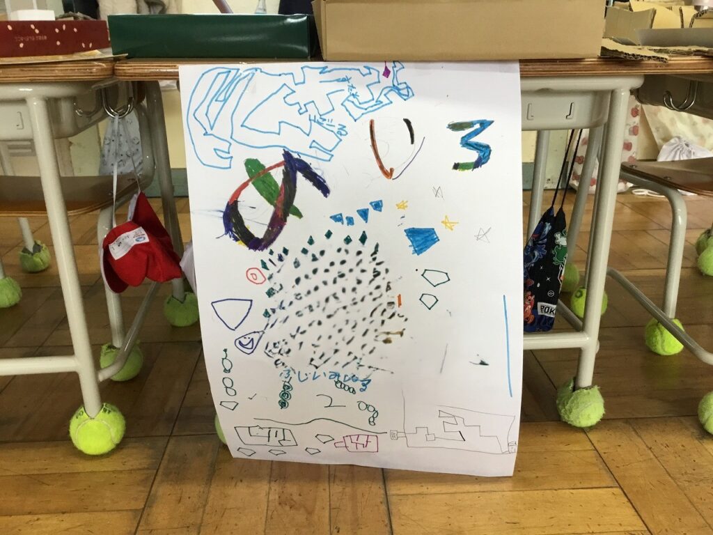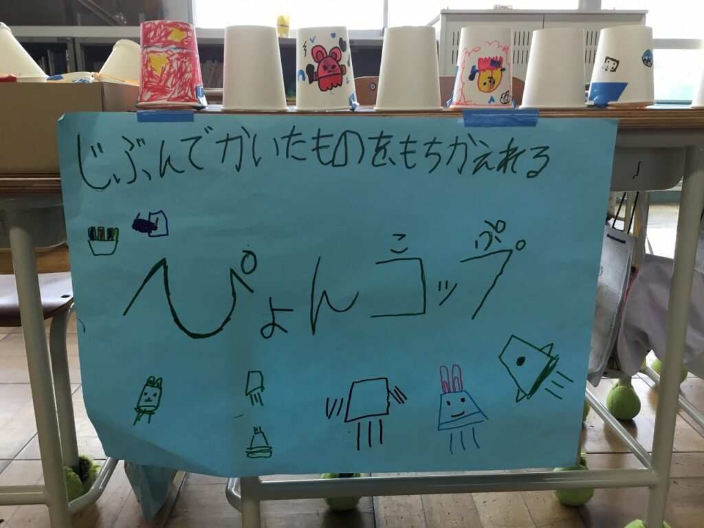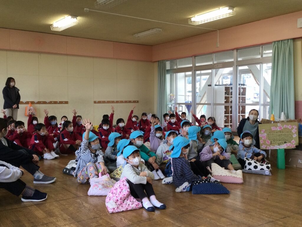昨日は、1、2年生がフェスティバルを開き、こども園の年長組さんを招待しました。はじめの会は2年生が進行しました。その後、1年生、2年生が準備したそれぞれのお店について紹介しました。
