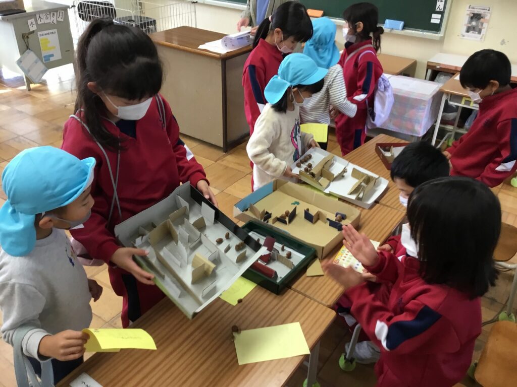2年生は、動くおもちゃのお店を考えました。おばけやしきのお店もあり、とてもにぎわっていました。