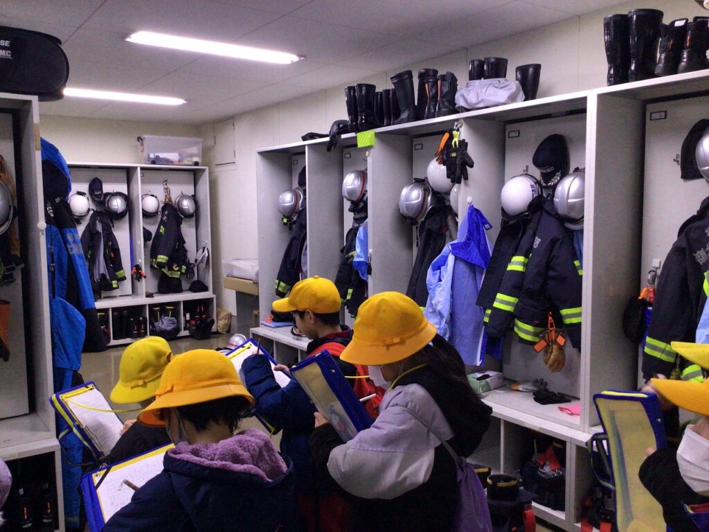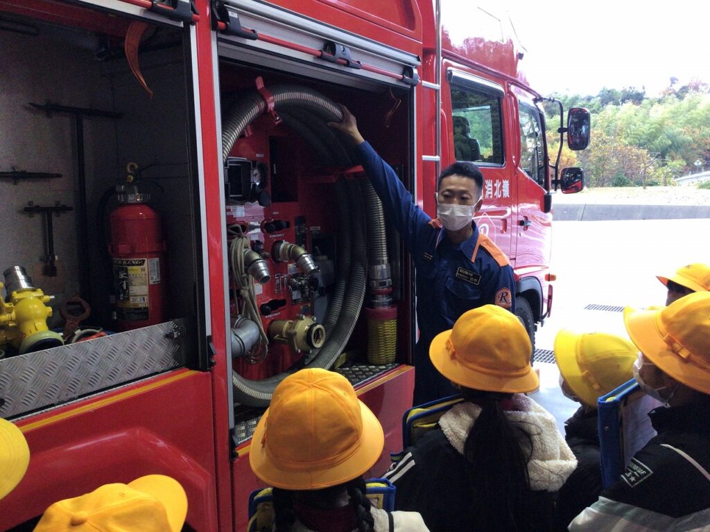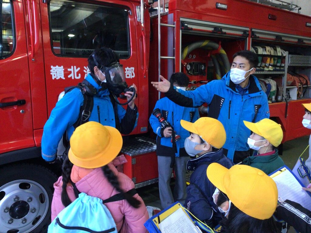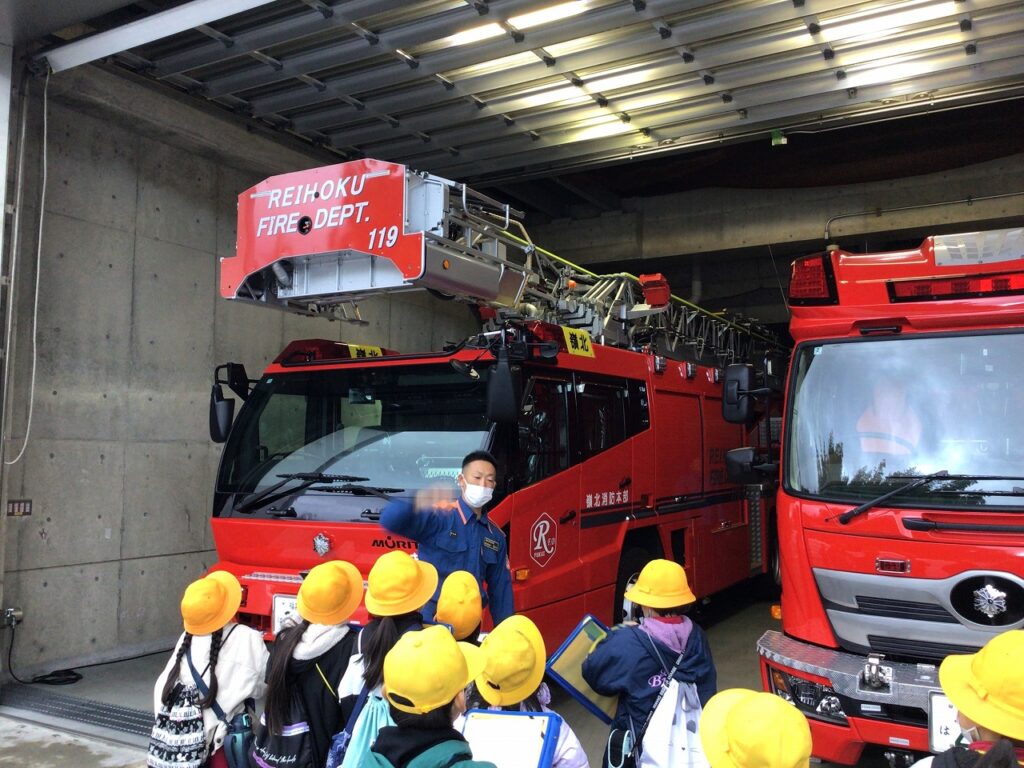 先週5日(金)、3年生が社会科の学習のため校外学習に出かけました。嶺北あわら消防署では、署内と車庫の見学をさせていだたきました。消防士の仕事内容や、消防車や救急車について知ることができました。