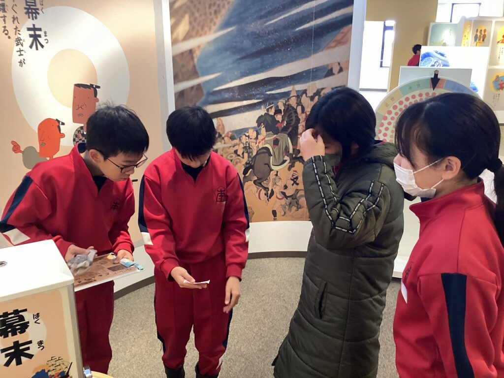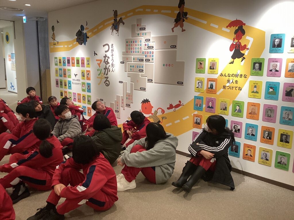 昨日、6年生が小学校生活最後の校外学習を楽しみました。最初に訪れたのは、こども歴史文化館です。福井県にゆかりのある人物たちについて学びました。