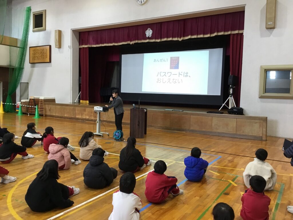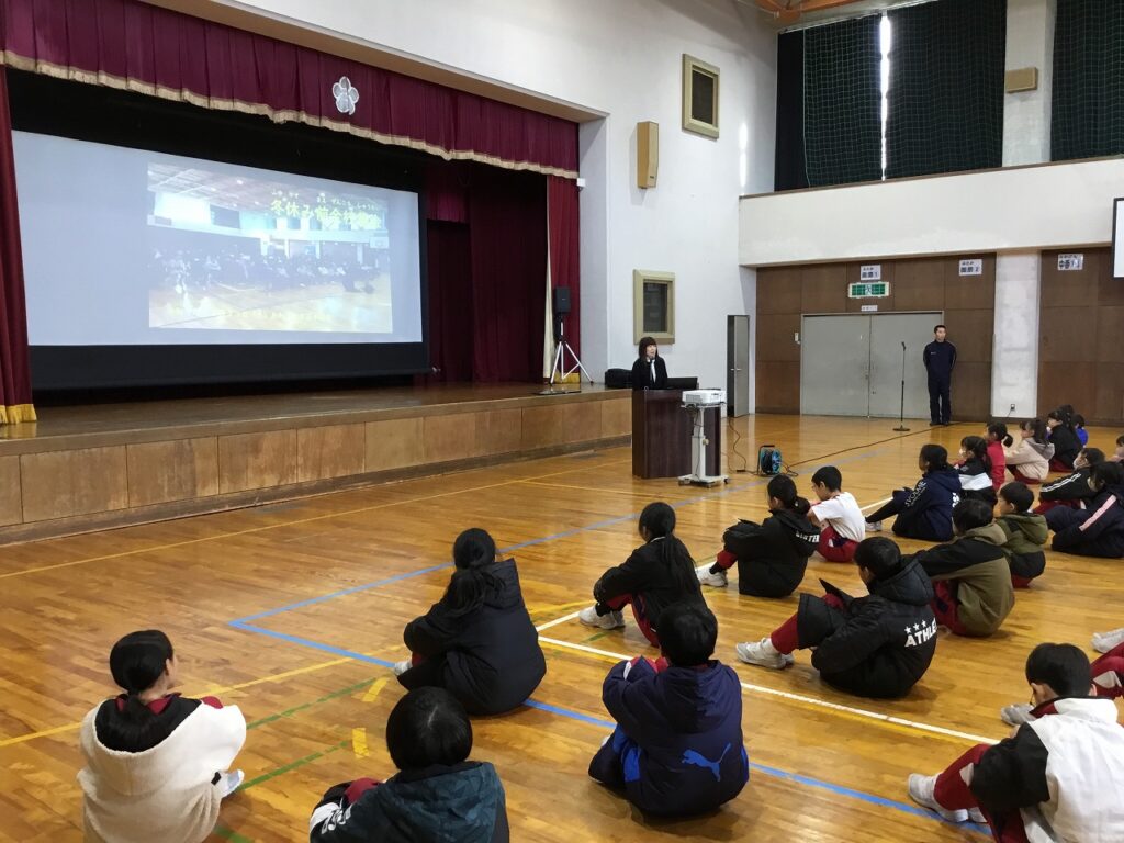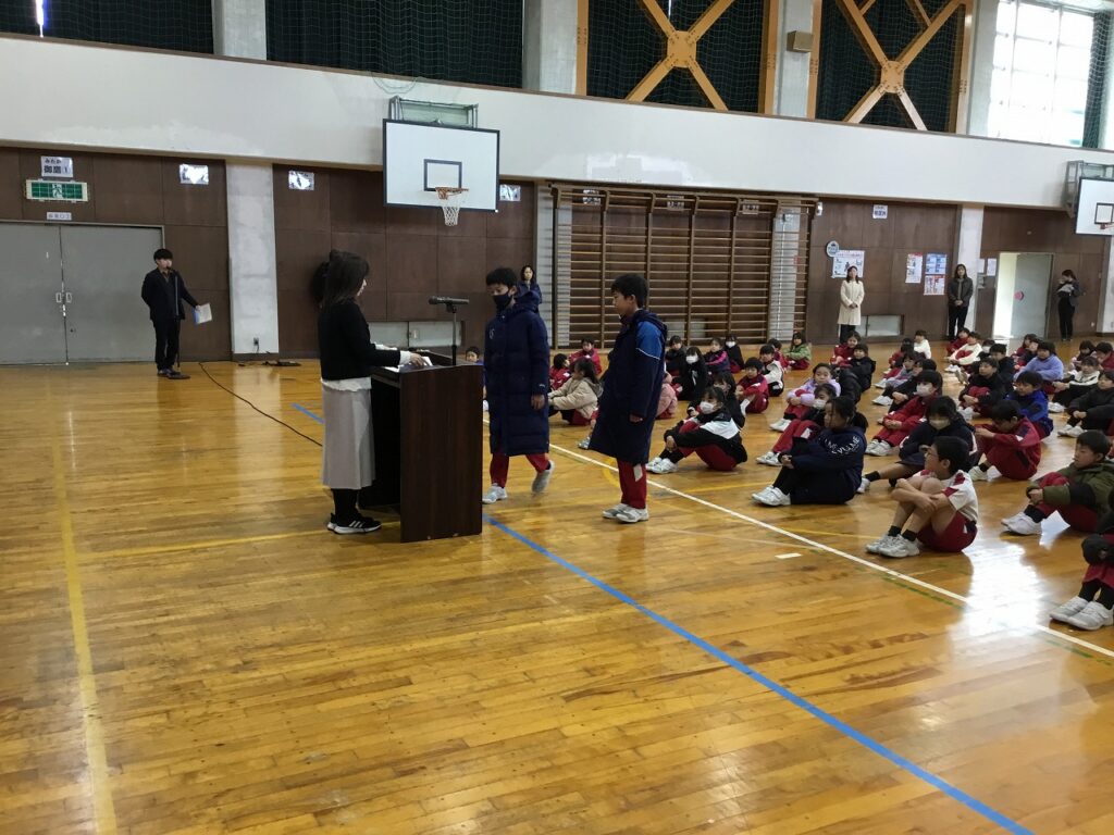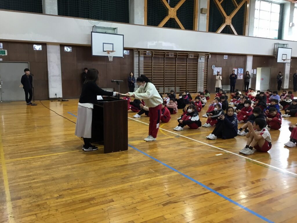 4時間目に冬休み前の全校集会を行いました。図画作品で入賞した児童を表彰しました。素晴らしい返事でした。