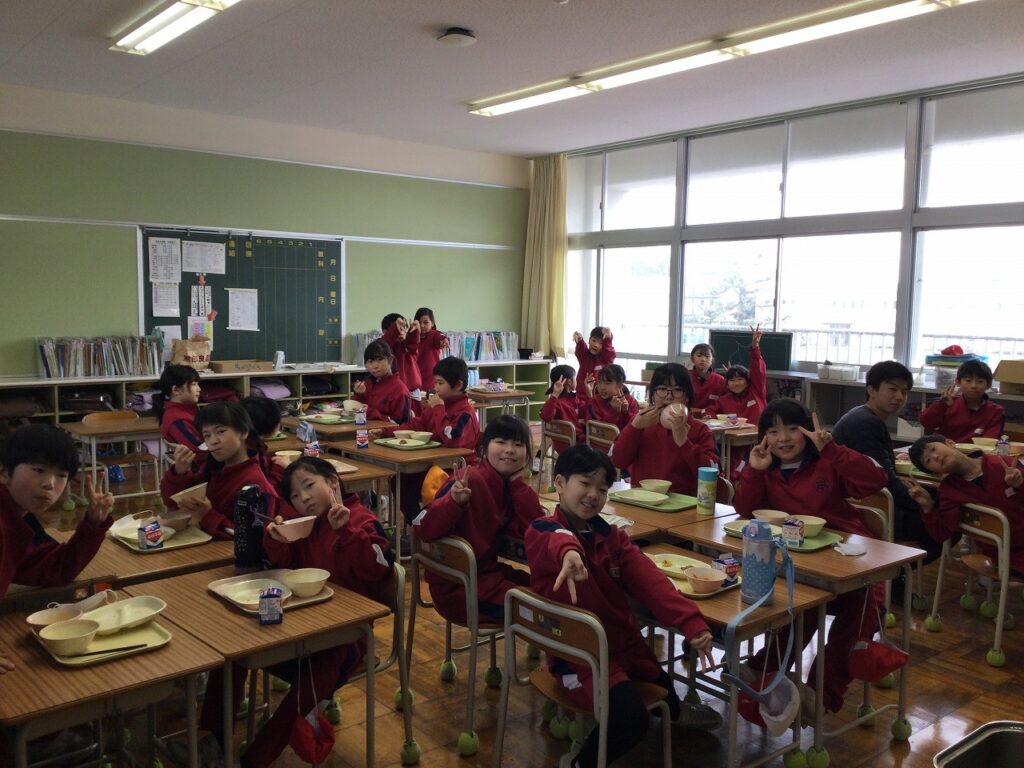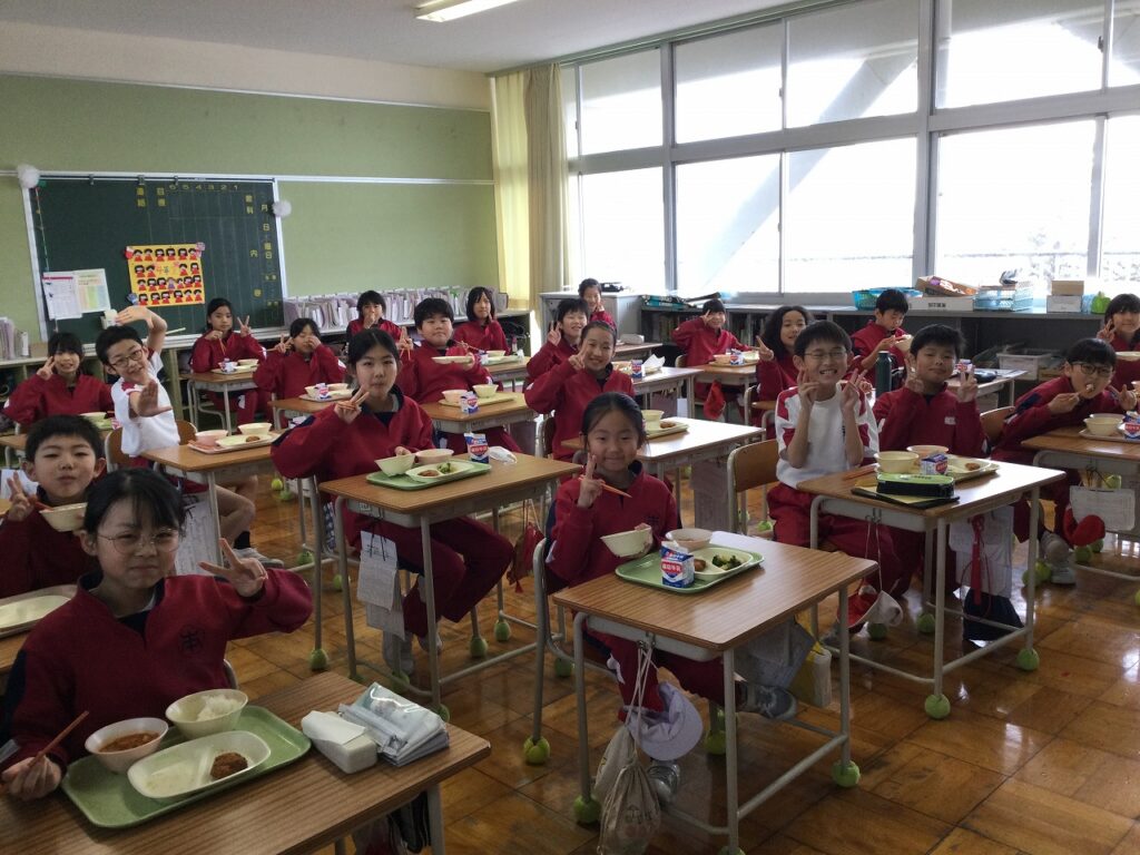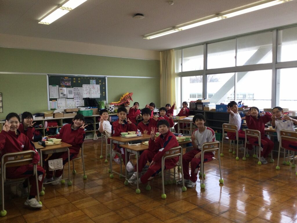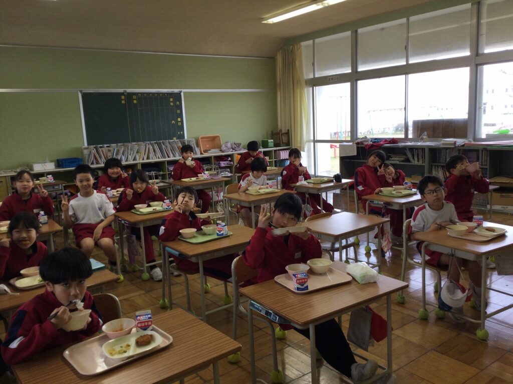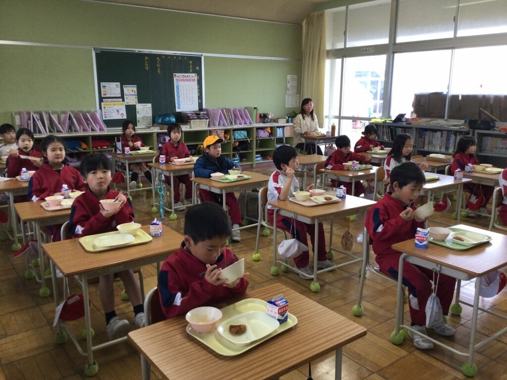 給食は新しい教室で食べました。特に、1階から2階へと移動した3年生は、新鮮な気分を味わっていました。