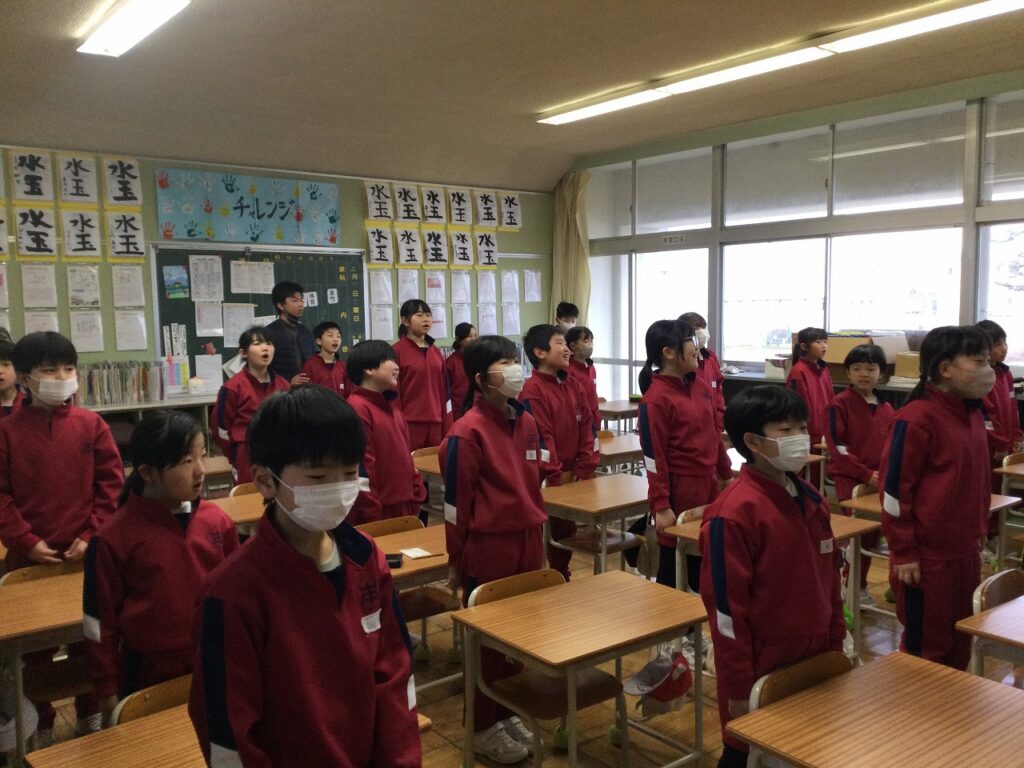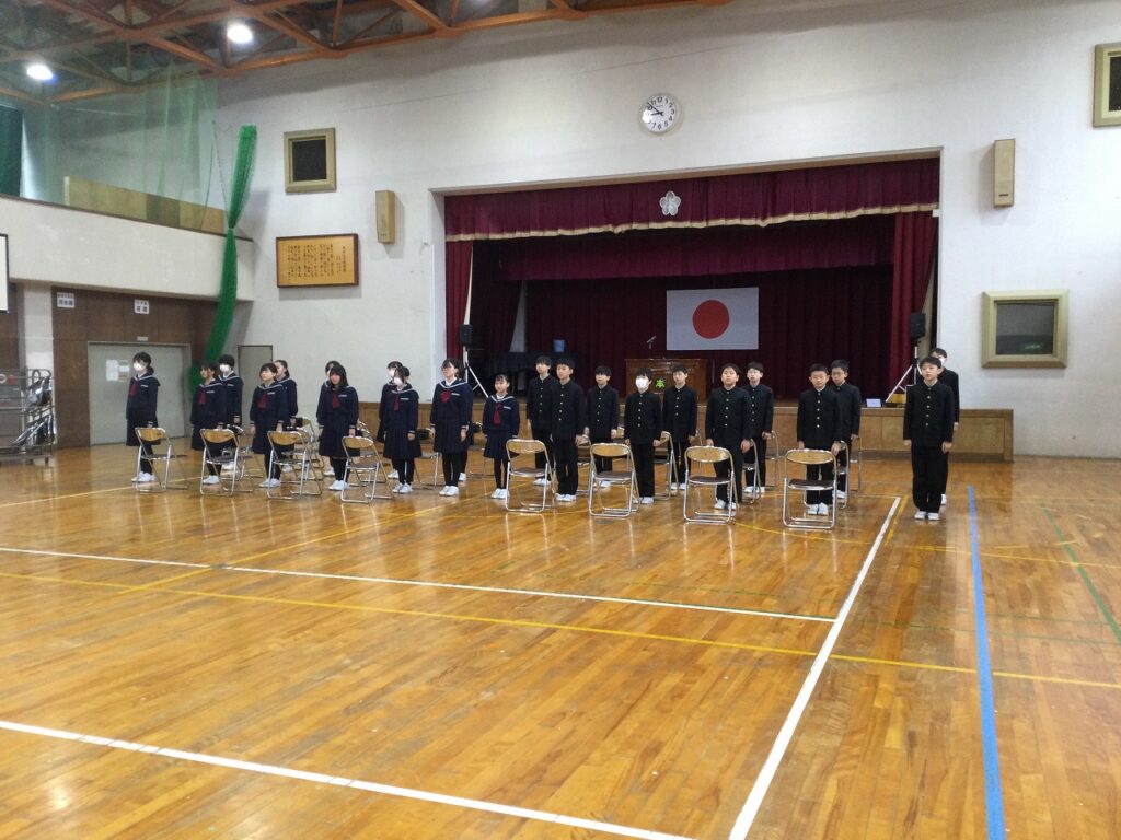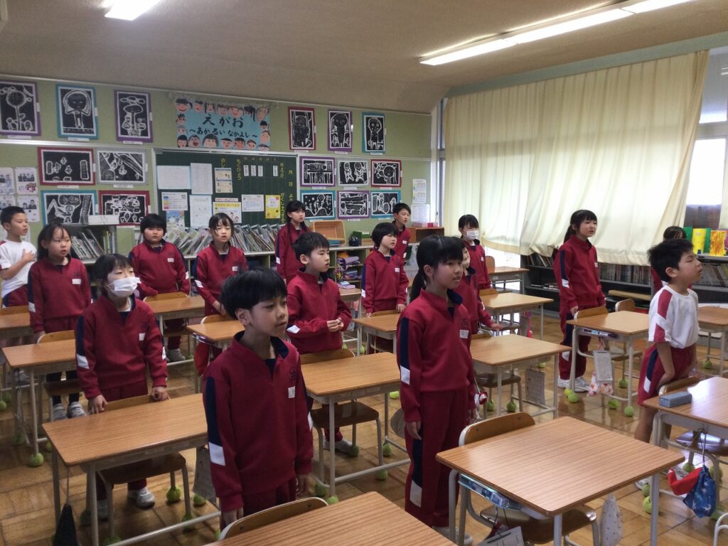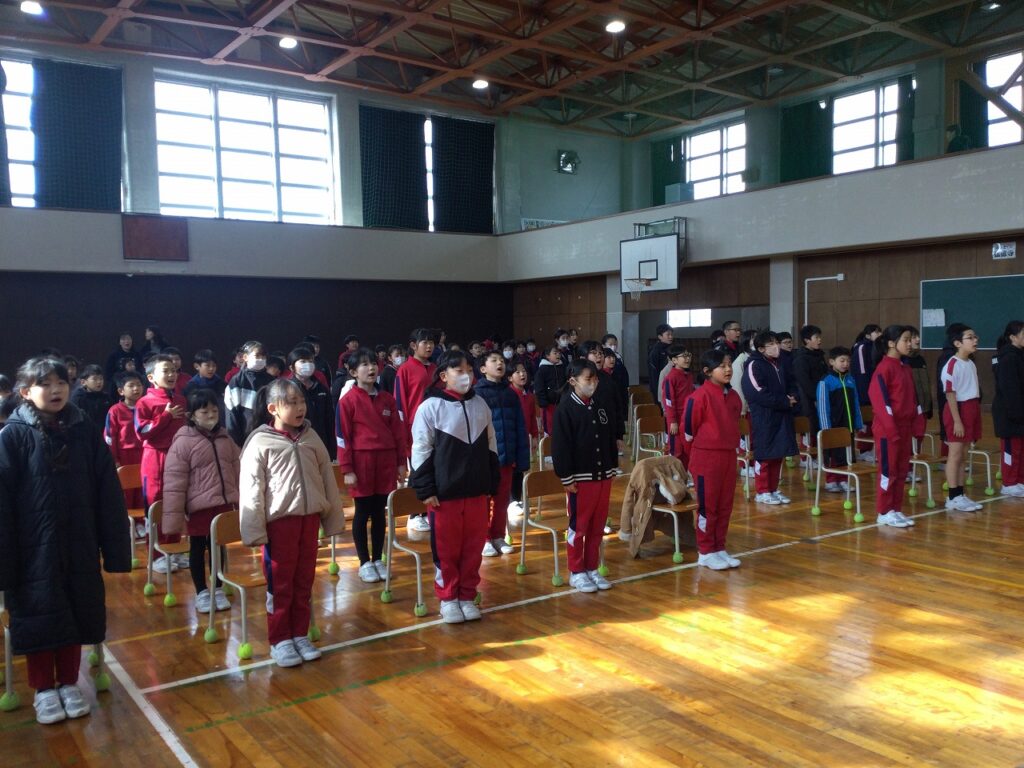 朝活動の時間、国歌や校歌の練習に取り組む学年もありました。卒業式の全体練習2日目は歌の練習を中心に行いました。子どもたちの歌声はすばらしく、体育館中に響き渡りました。