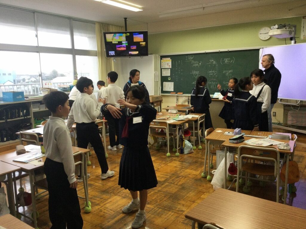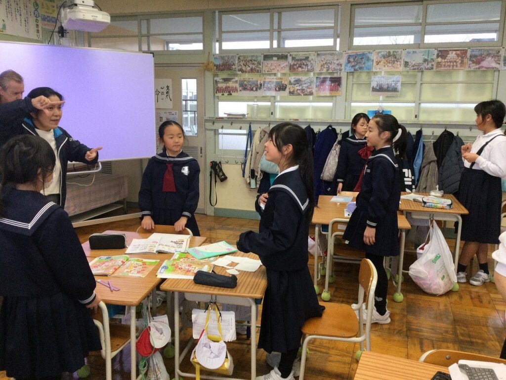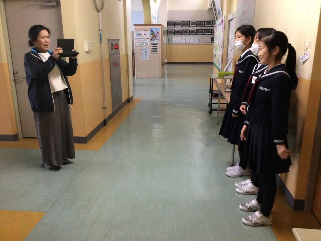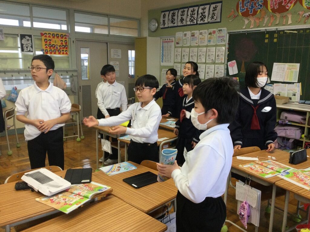 4年生は外国語活動の授業。自分たちのお気に入りの場所までの道案内と、お気に入りの場所の紹介を英語で上手に表現していました。