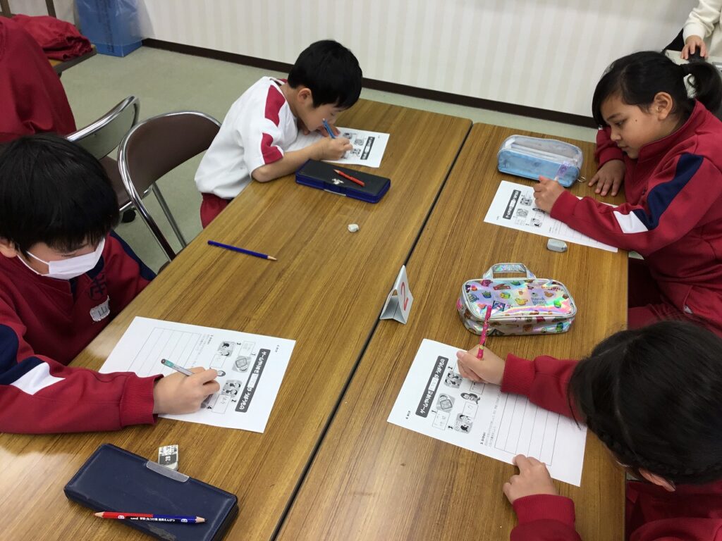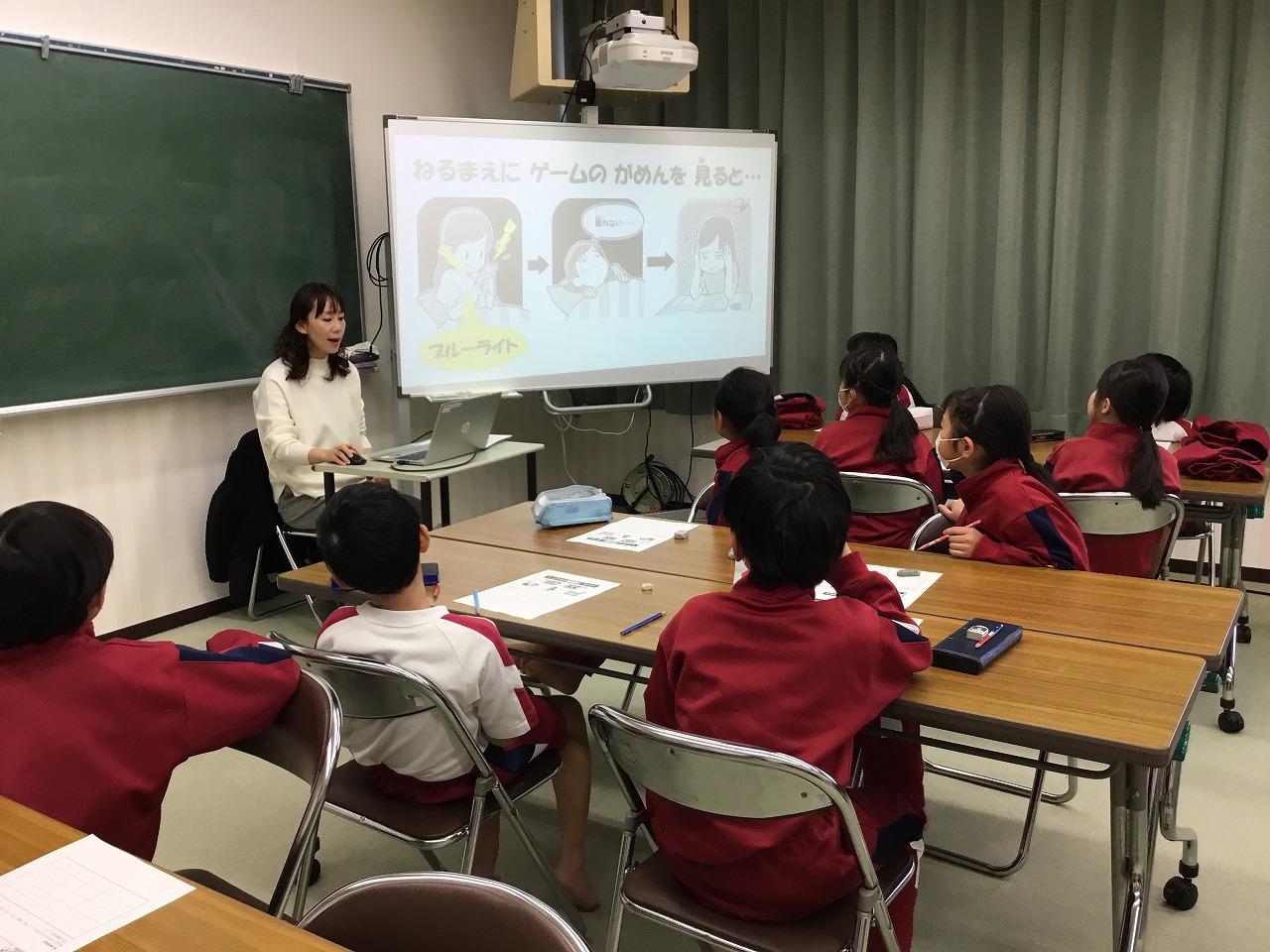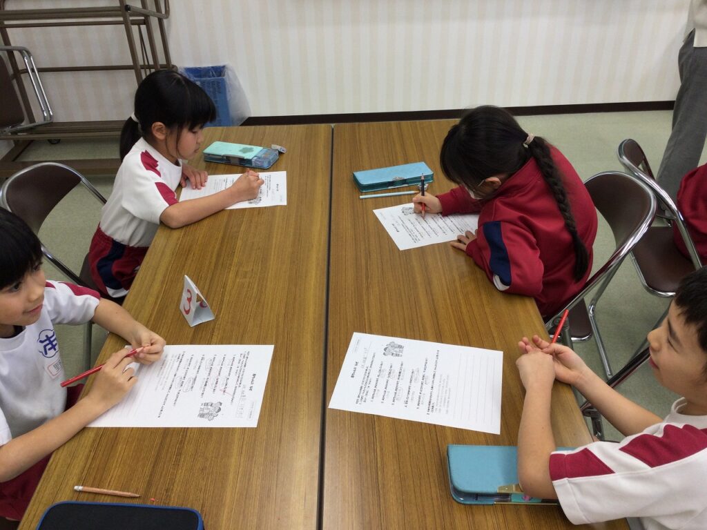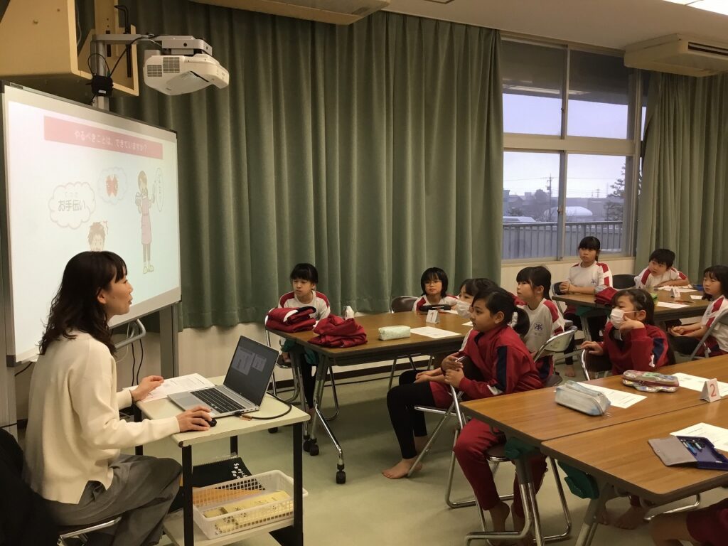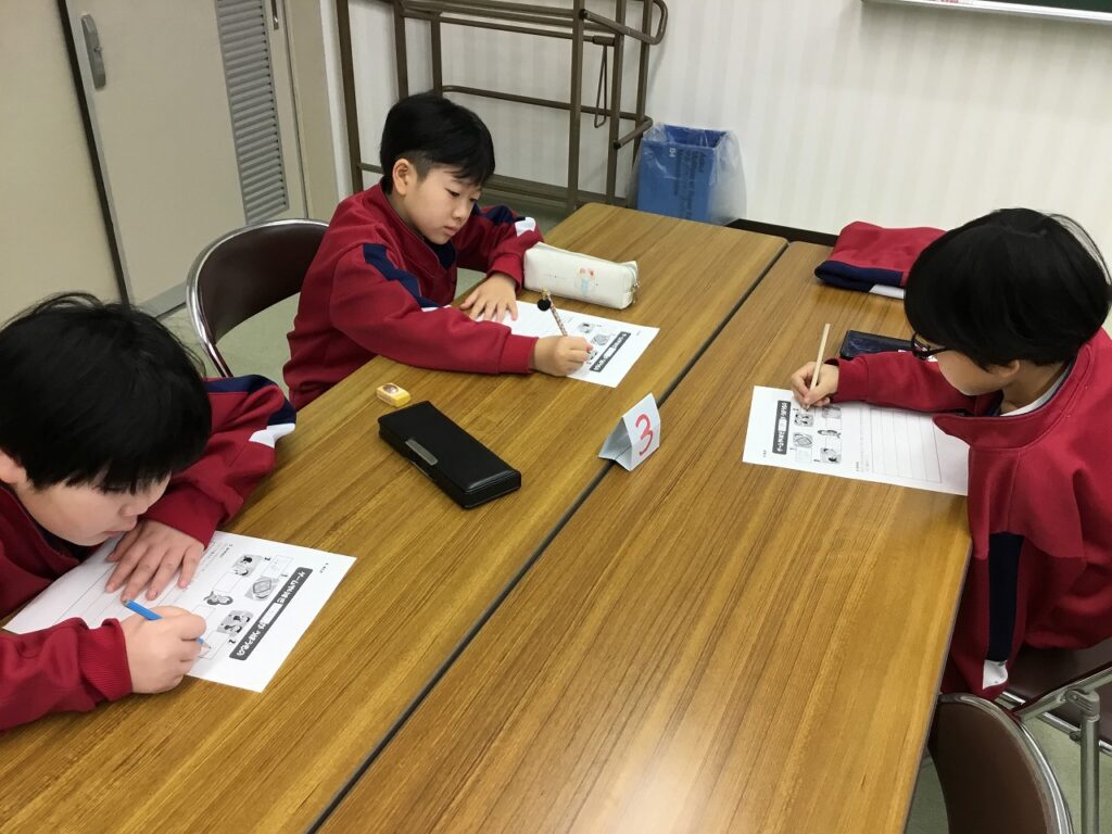 3年生はテーマ『生活』のうちの「ゲームとのじょうずなつきあい方」についての学習でした。”ゲームやりすぎどろぼう”が、睡眠時間、体力、視力、脳のはたらきの4つの大切なものをうばうことを子どもたちは知りました。