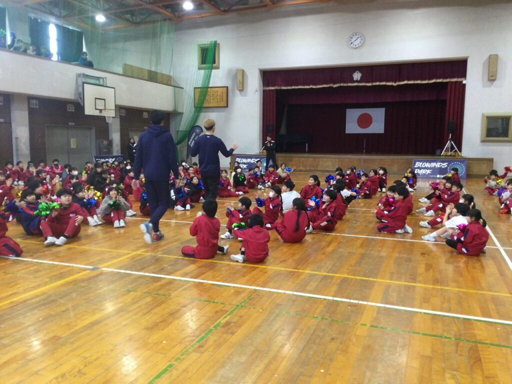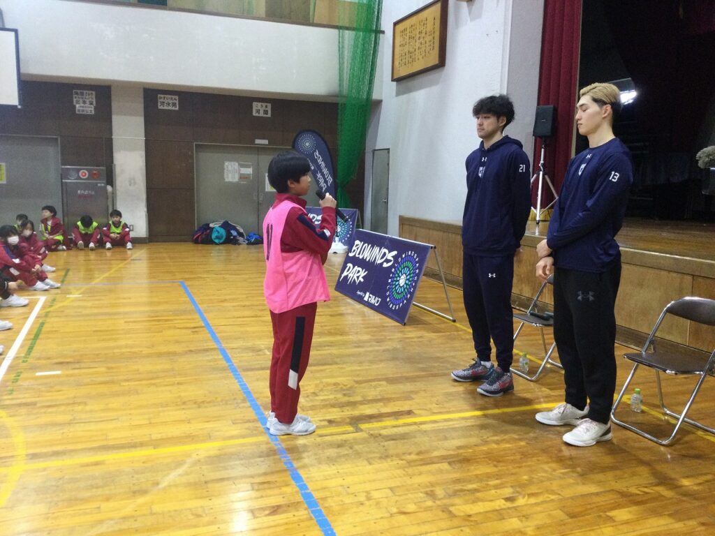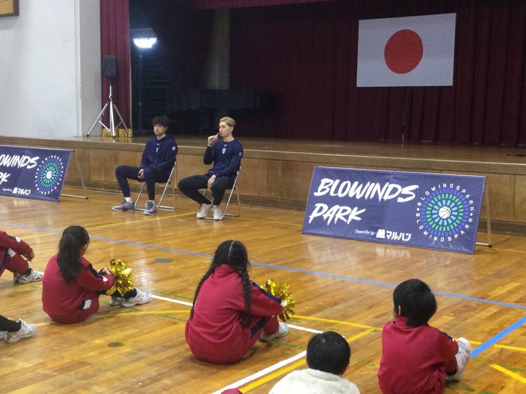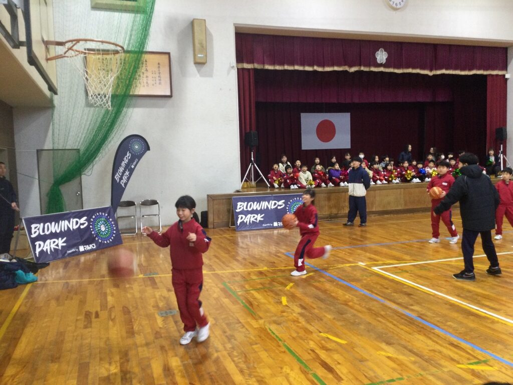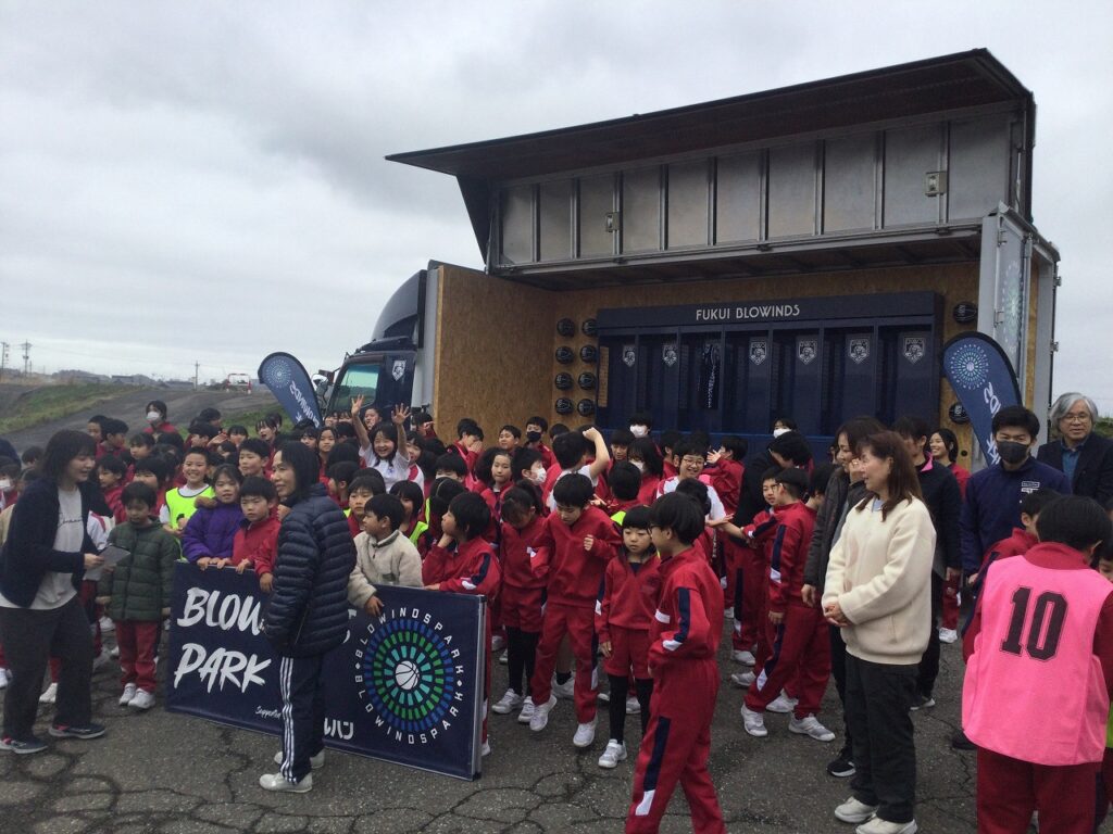 福井初のプロバスケットボールチームとして2022年に発足し、現在B2で躍進を続けている“福井ブローウィンズ”の選手、スタッフが、今日の午後、本校を訪れました。これは「BLOWINDS PARK」と題し、福井のこどもたちにわくわくを届けることを目的とした、福井ブローウィンズと株式会社マルハンとの協同プロジェクトです。