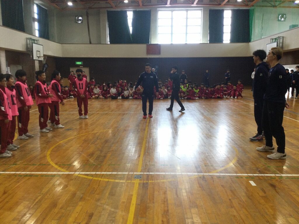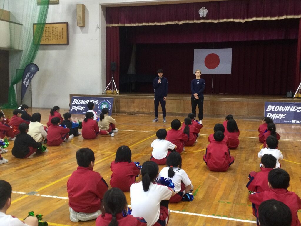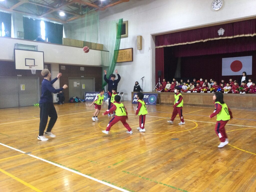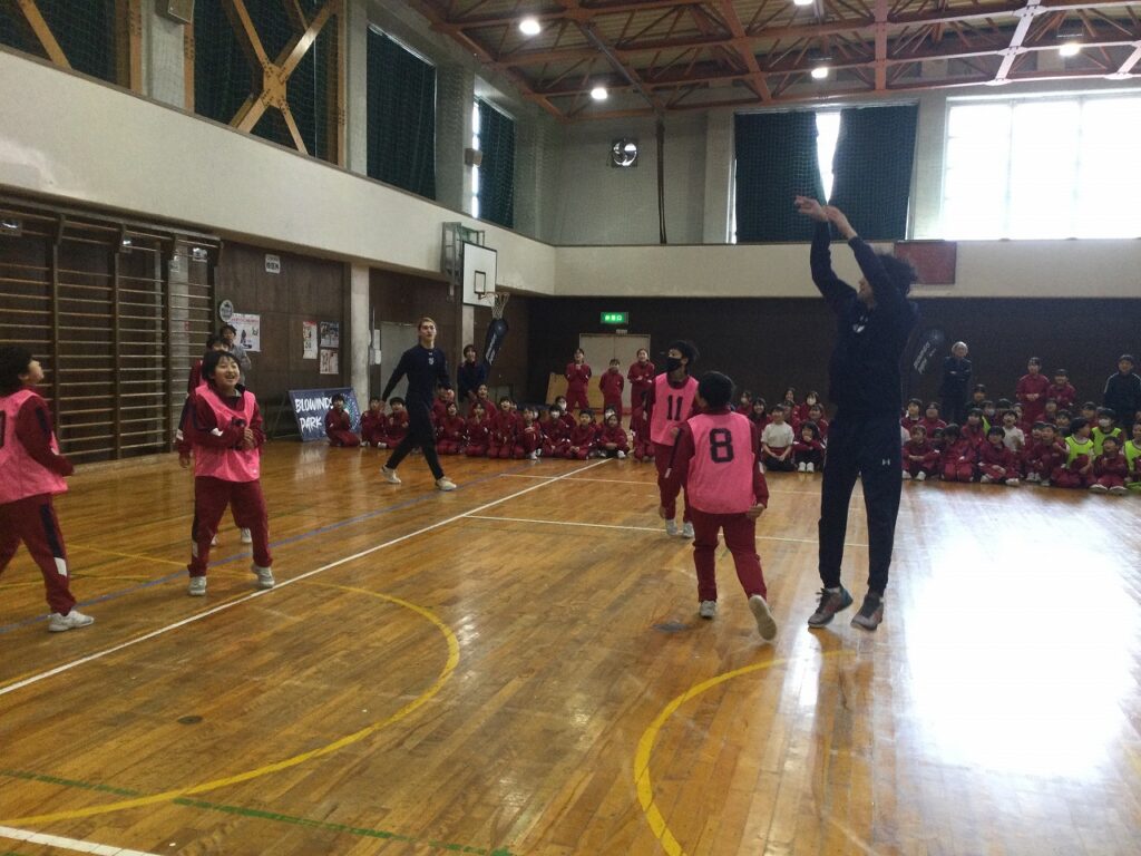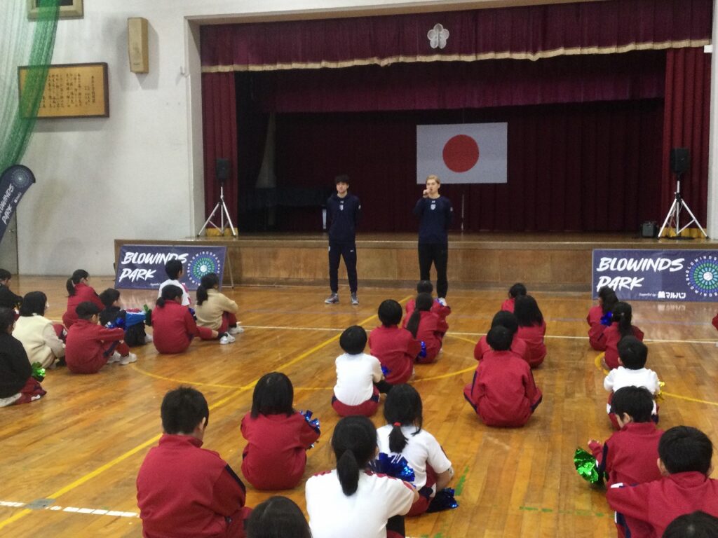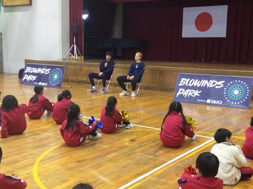 福井初のプロバスケットボールチームとして2022年に発足し、現在B2で躍進を続けている“福井ブローウィンズ”の選手、スタッフが、今日の午後、本校を訪れました。これは「BLOWINDS PARK」と題し、福井のこどもたちにわくわくを届けることを目的とした、福井ブローウィンズと株式会社マルハンとの協同プロジェクトです。