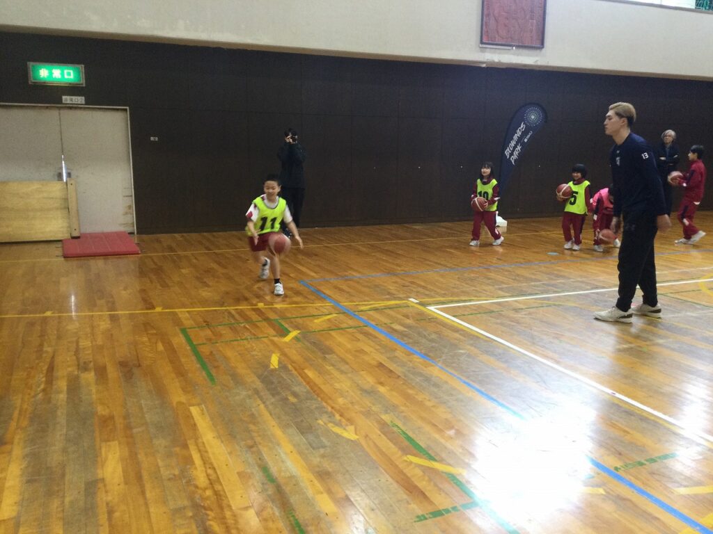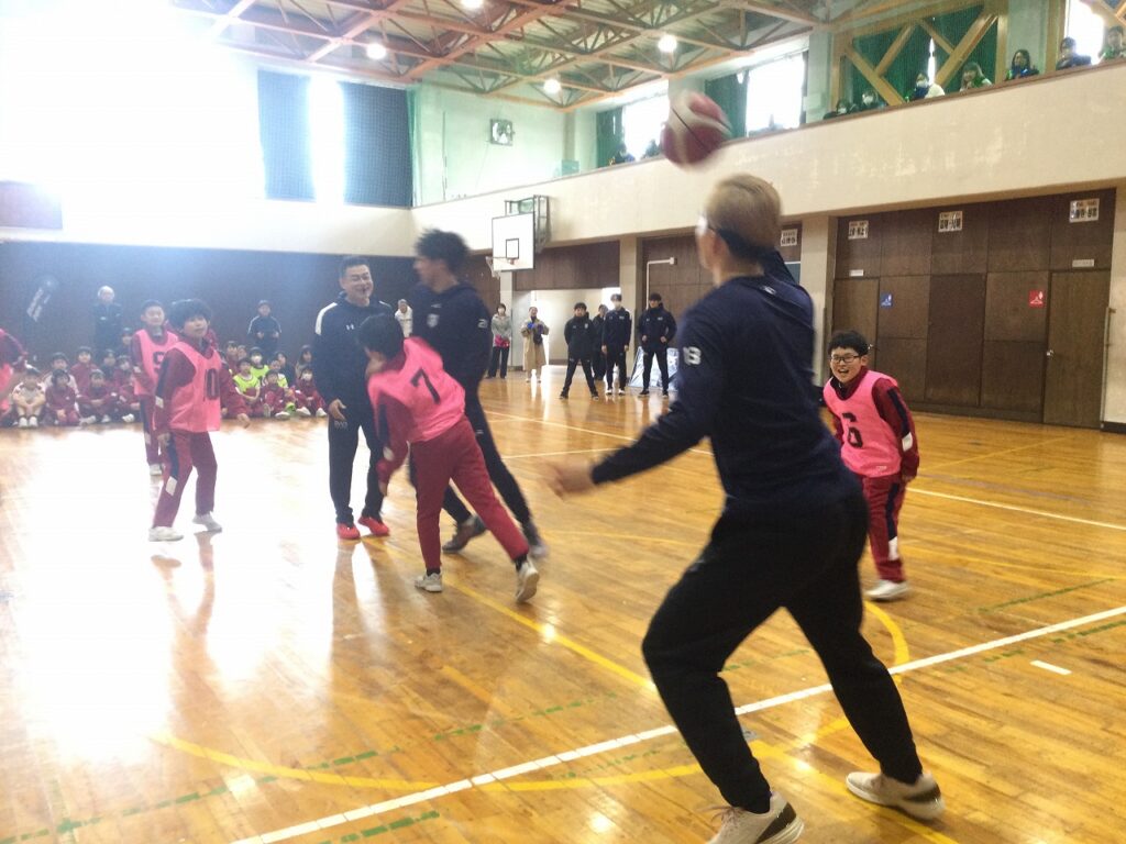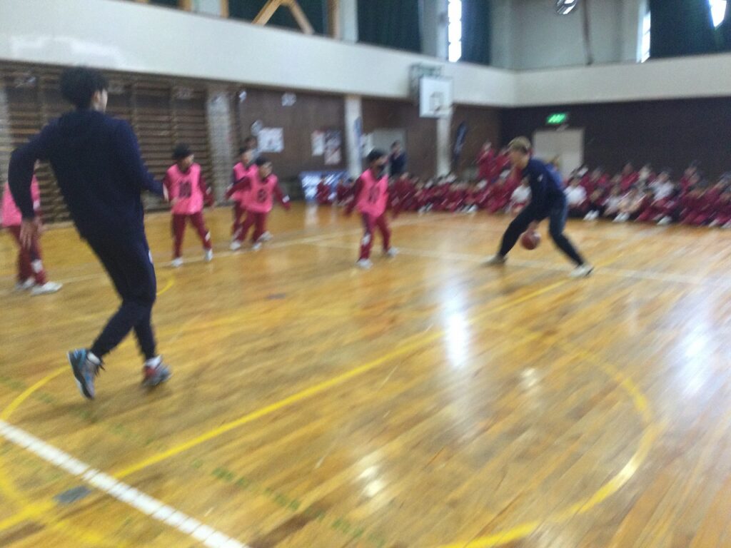 次は、5、6年生チームとの対戦です。川島選手と満田選手の華麗なパスやダンクシュートに、子どもたちは感動です。