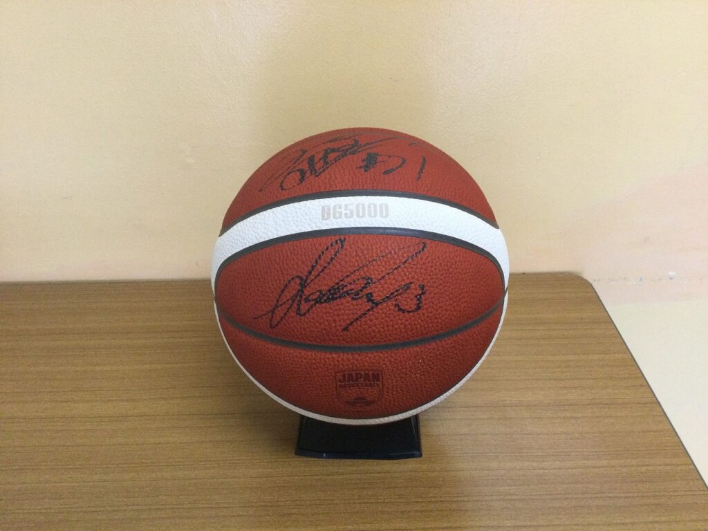 バスケットボールにサインもいただきました。受けとった児童は、お礼と感想を伝えました。