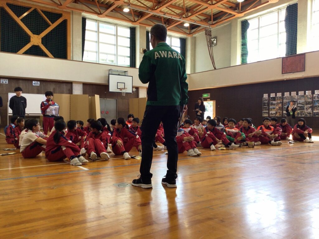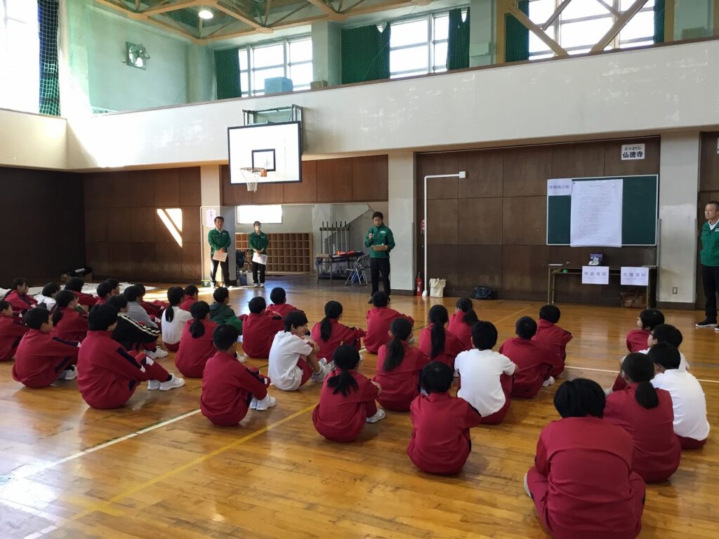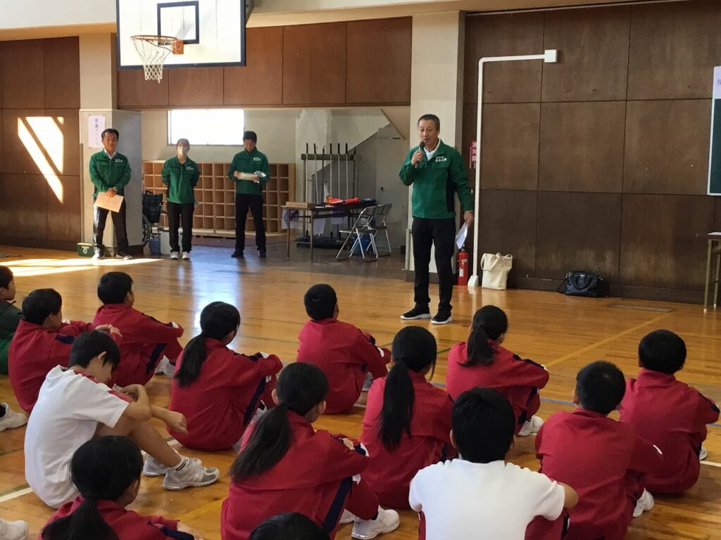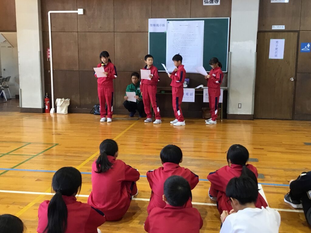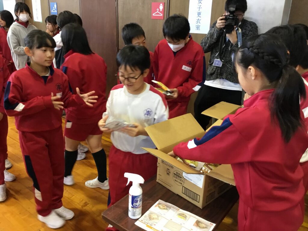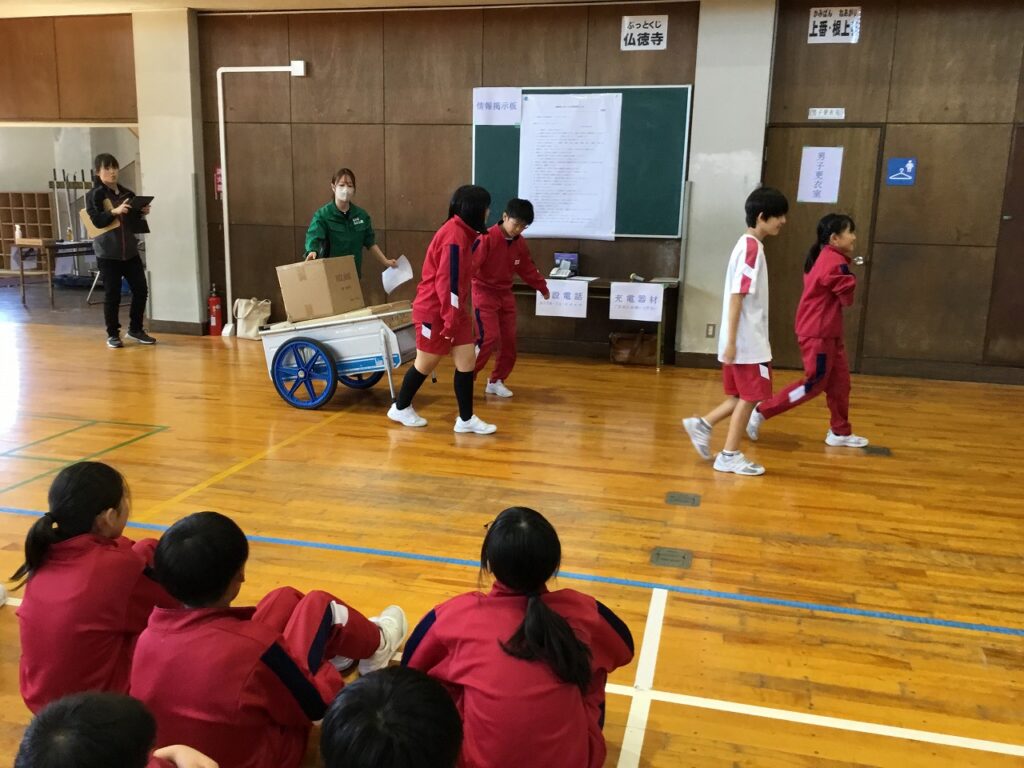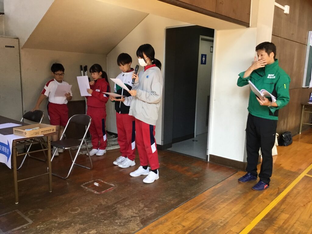 先週の23日(木)、避難訓練終了後引き続き、5、6年生を対象に防災教室を行いました。あわら市危機管理課の職員の方々を講師お招きし、避難所の開設、運営を模擬体験しました。