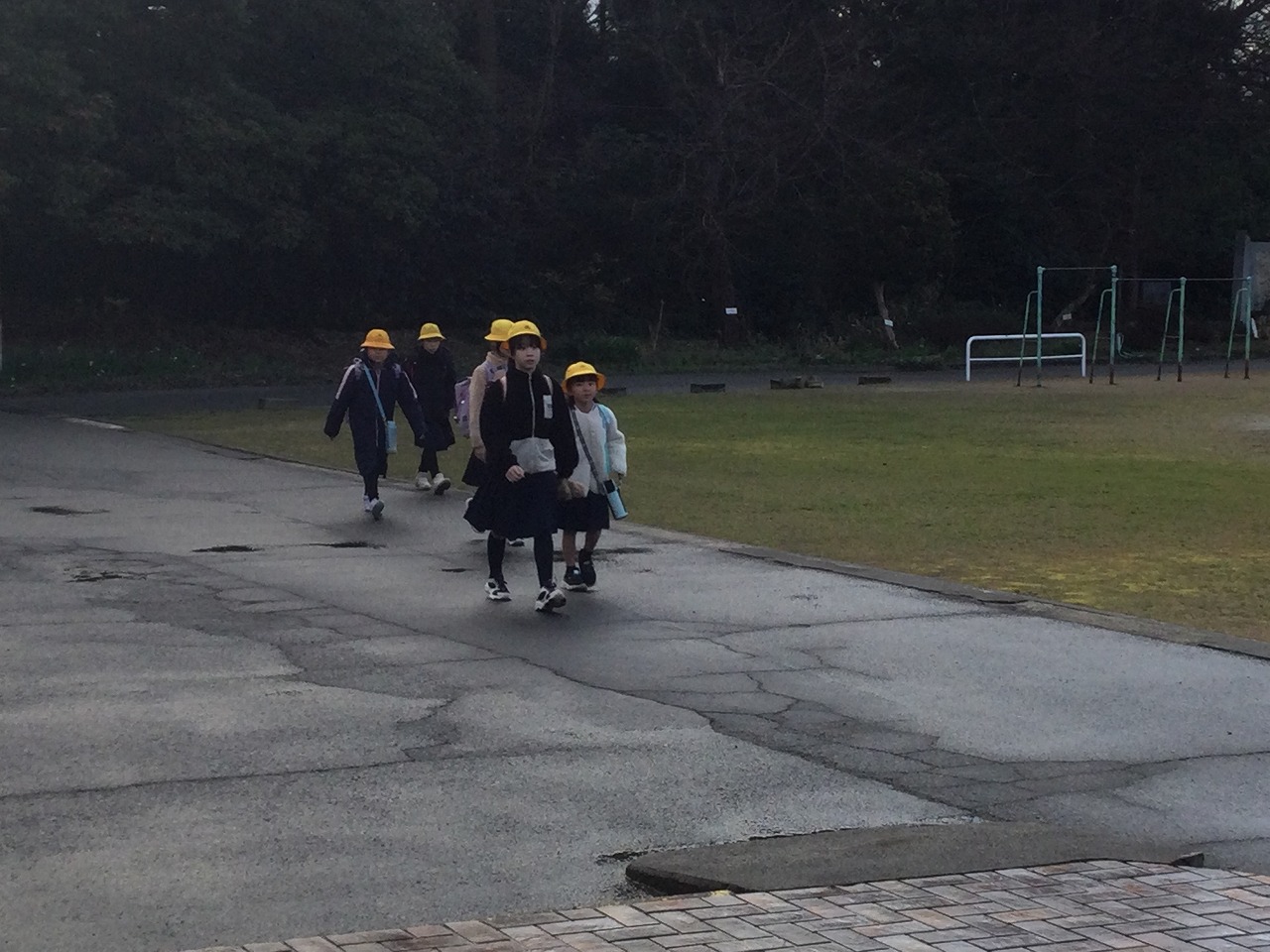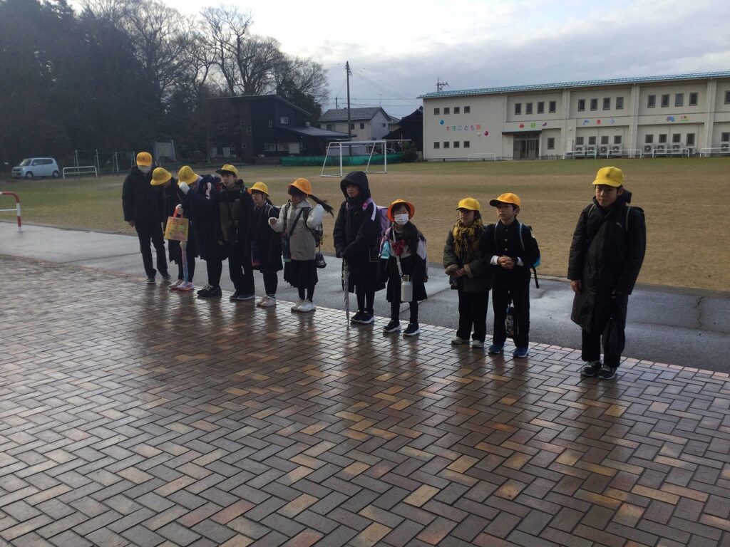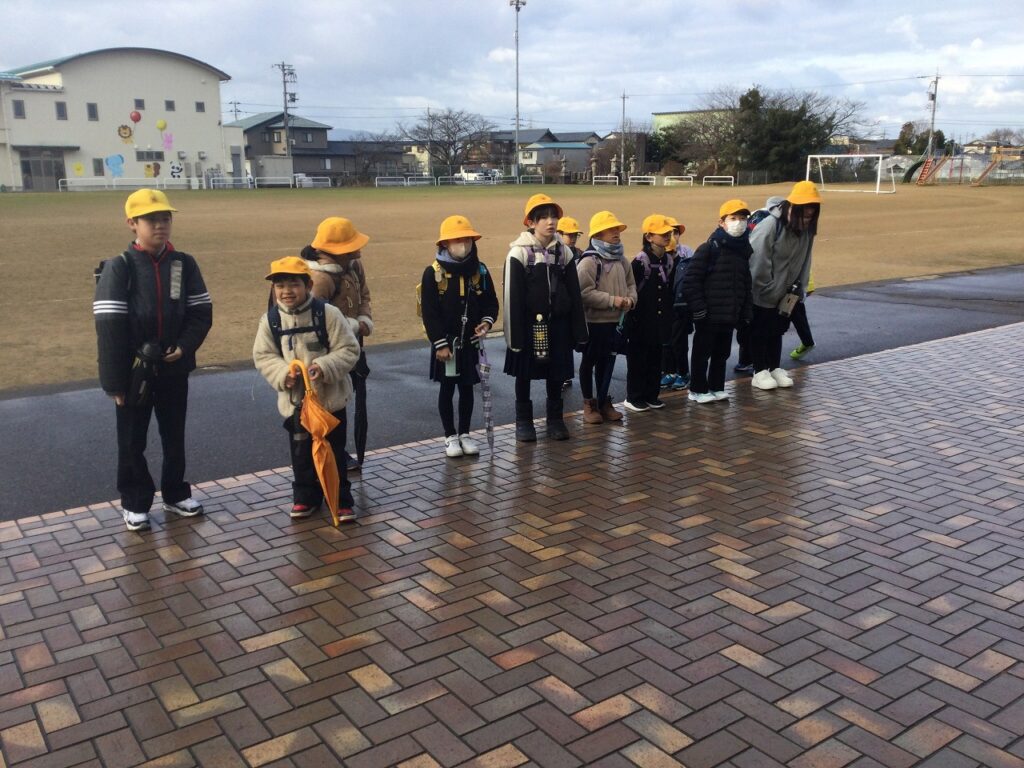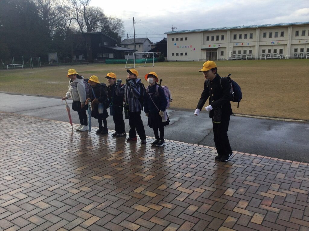今日から集団登校の班長が、6年生から下級生に引き継がれました。3~5年生の新しい班長が先頭になり、最後尾で6年生が見守りながらの登校です。どの班の班長も、後ろの様子を気にしながらがんばっていました。
