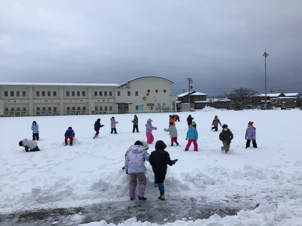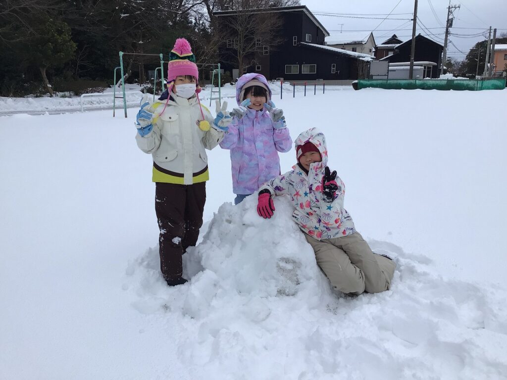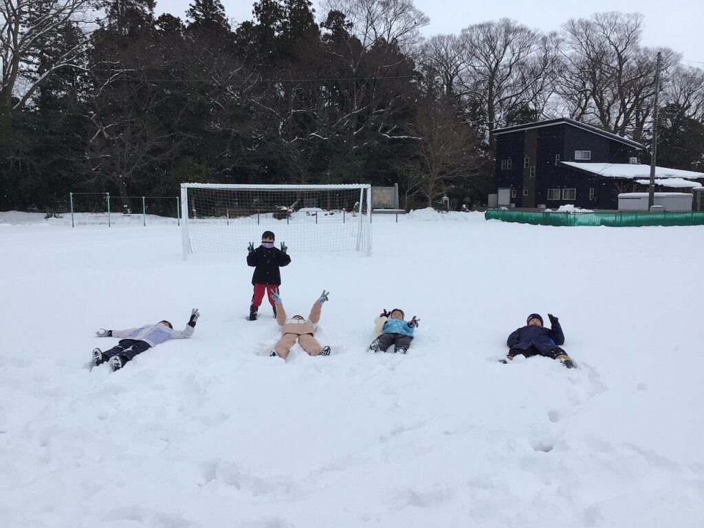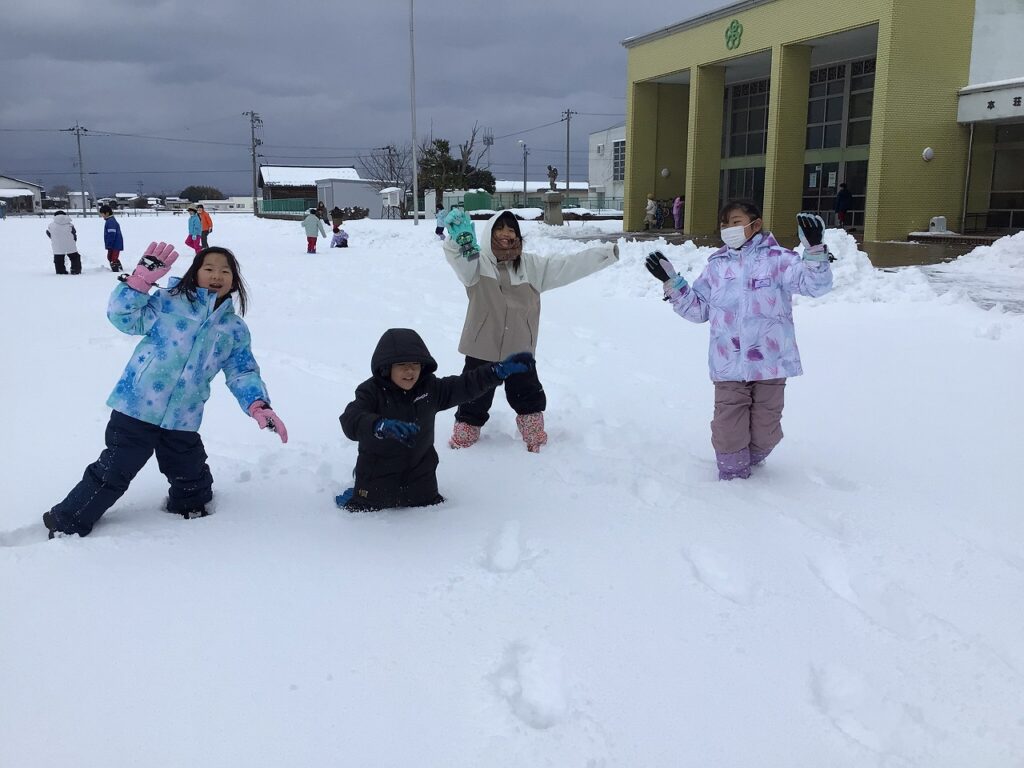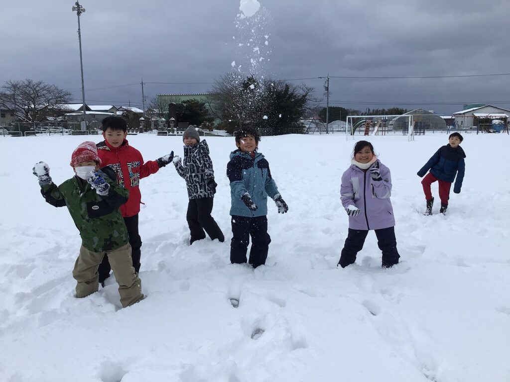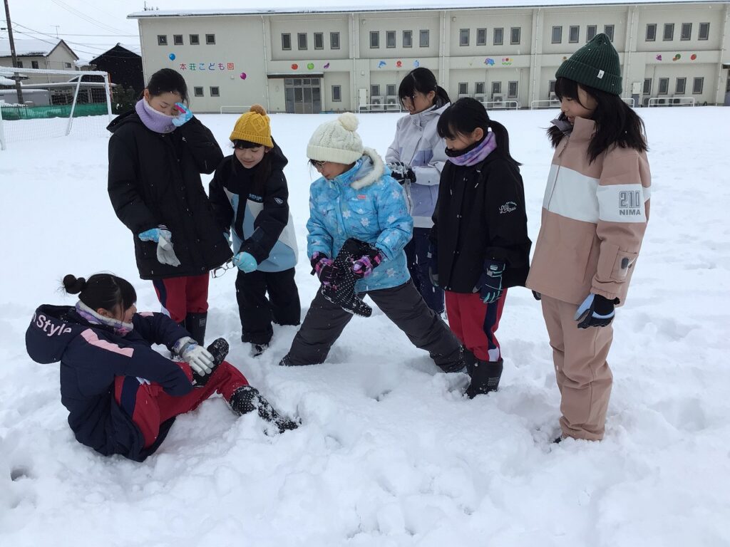 今日は3年生と5年生が雪遊びを楽しみました。雪投げをしたり、雪で何かを造ったり、雪の上に寝転んだりと、みんなとても楽しそうでした。