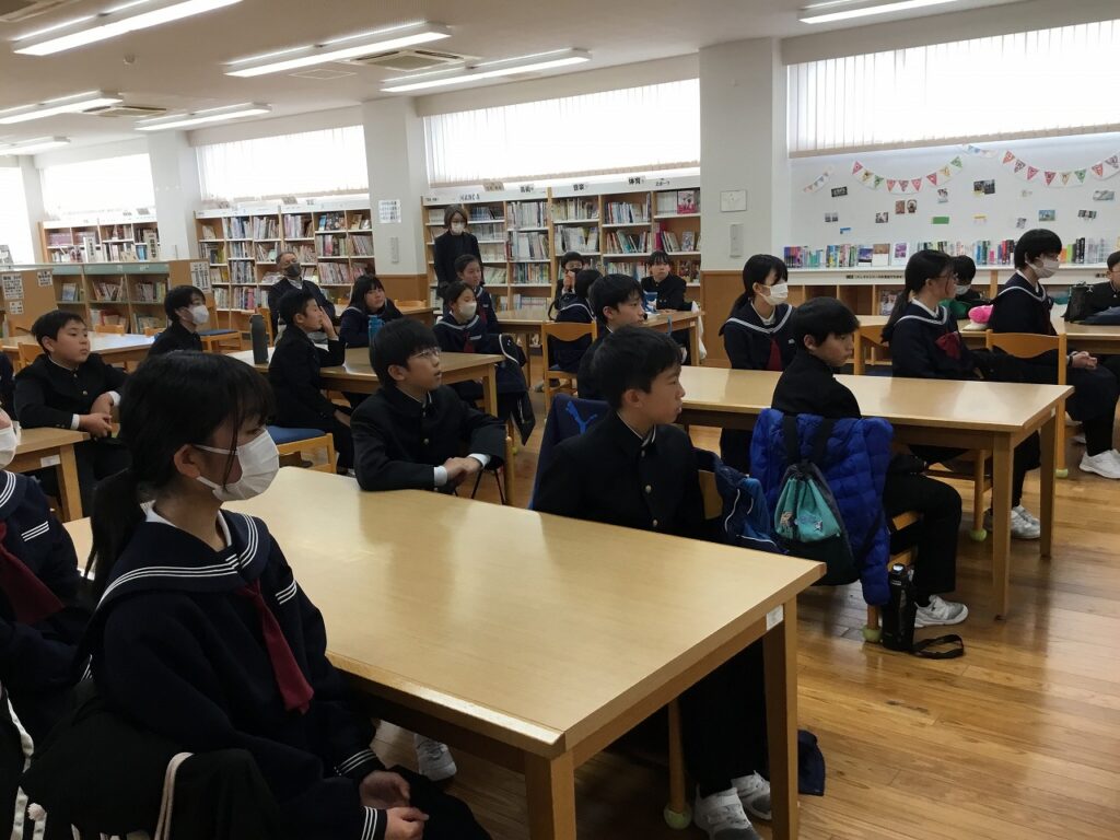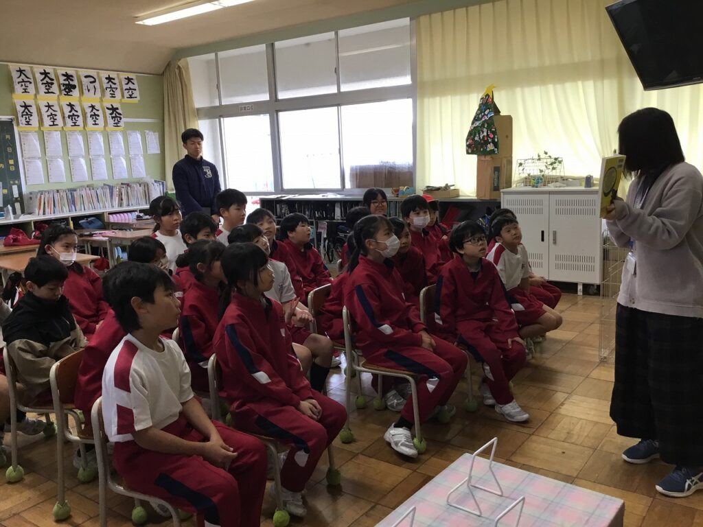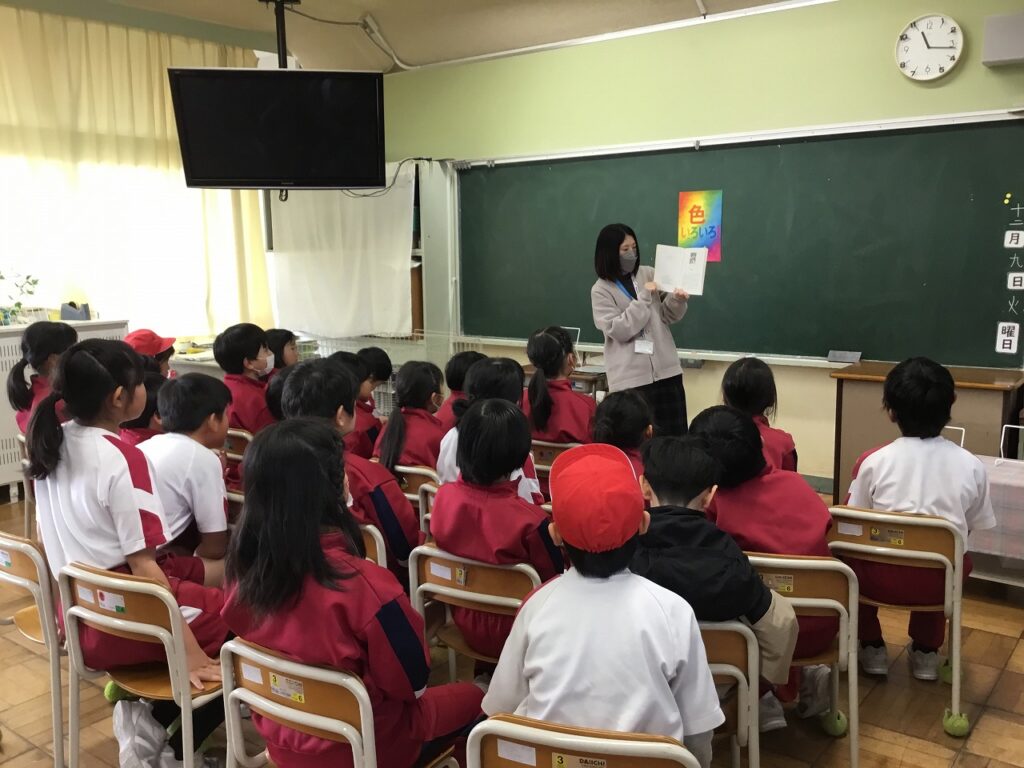 12月10日(水)、久しぶりに青空が広がるお天気です。昨日、3年生が芦原図書館の方によるブックトークを行いました。3年生のテーマは『色』。色に関する様々な本を紹介してくださいました。