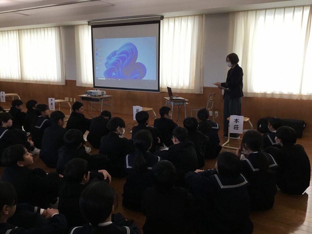 6年生は、中学校のオープンクラスに参加しました。まずはじめに、中学生の授業の様子を見て回りました。その後、中学校の先生方から、中学校の学習、生活、部活動についてお話をお聴きしました。最後に、中学1年生で本校出身の生徒たちが、小学生の質問に答えてくれました。