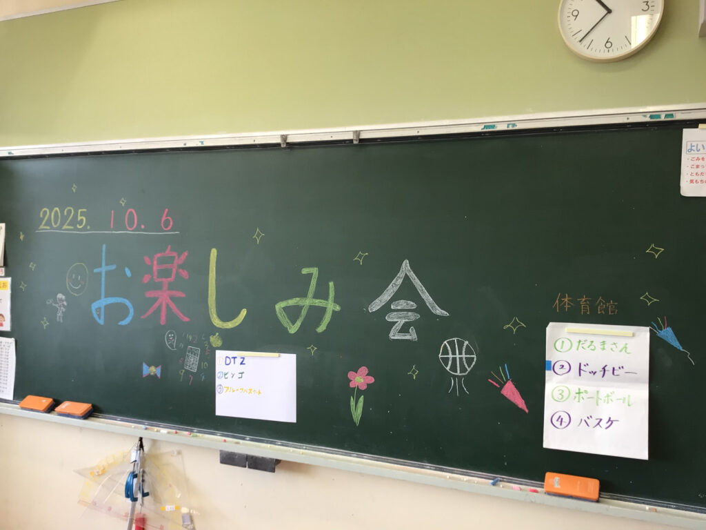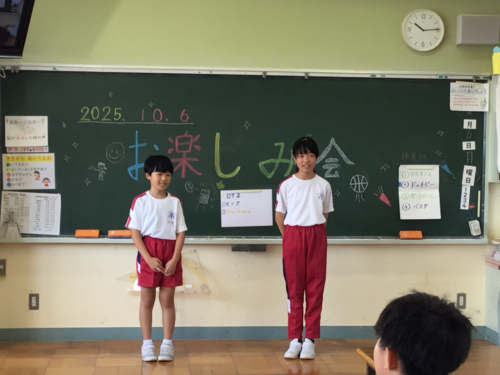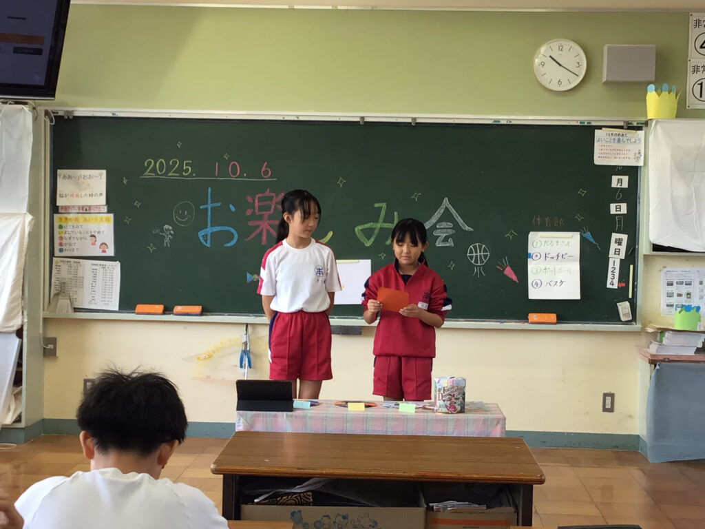 昨日、5年生はお楽しみ会を楽しみました。教室で楽しむ内容と、体育館で体を動かしながら楽しむ内容でした。企画と準備は、すべて子どもたちが行います。お楽しみ会を通じて、仲間と協力する楽しさを感じてほしいと思います。
